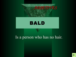 This document appears to be notes from an English language class defining various adjectives related to physical appearance and attractiveness. It includes definitions for the adjectives "bald", "beautiful", "blonde", and "fit" and provides celebrity examples for each. It also includes lyrics for the song "Be Okay" by Ingrid Michaelson.