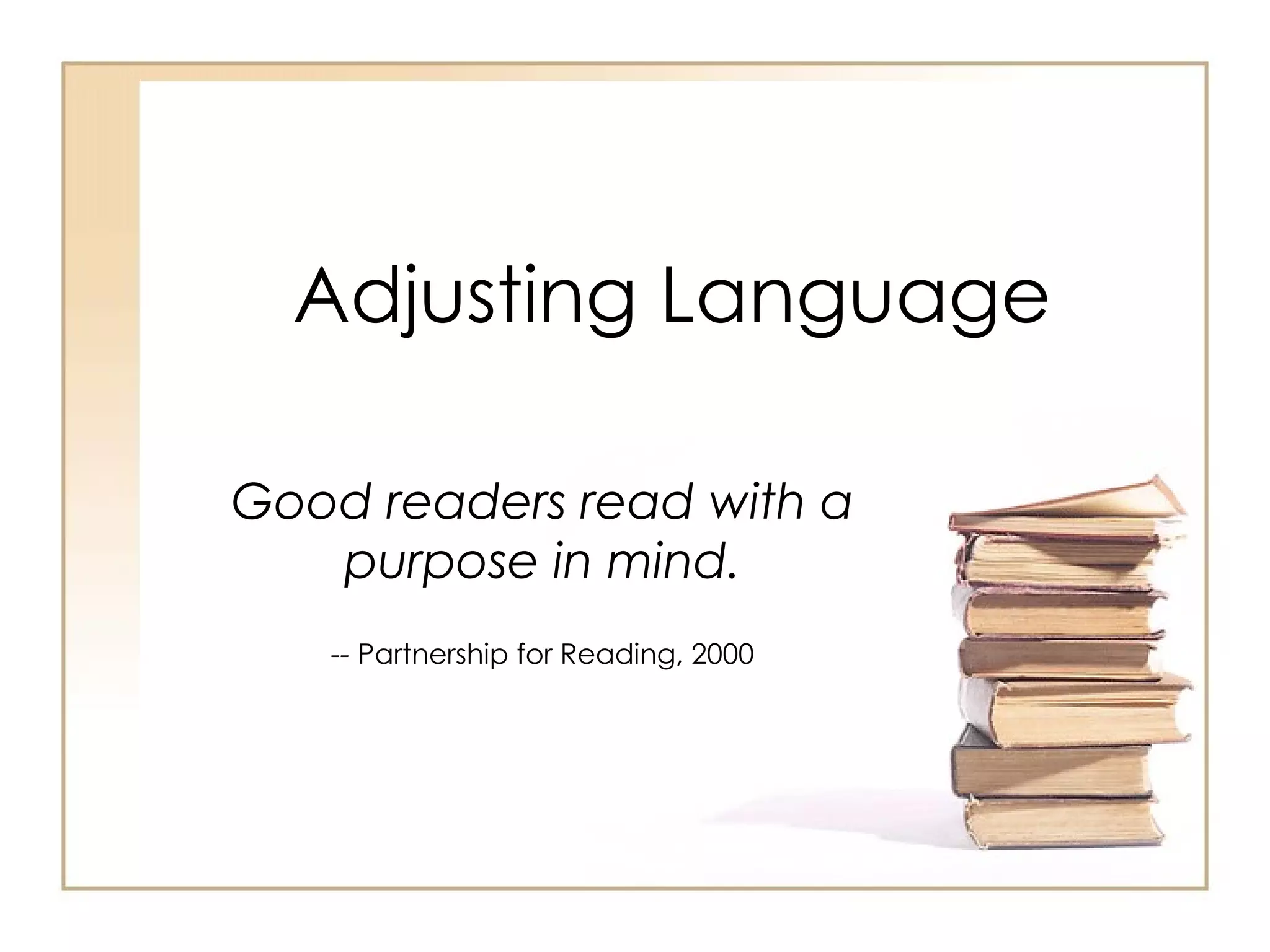 1) The document discusses strategies for teachers to help students adjust their language to communicate effectively for different audiences and purposes.