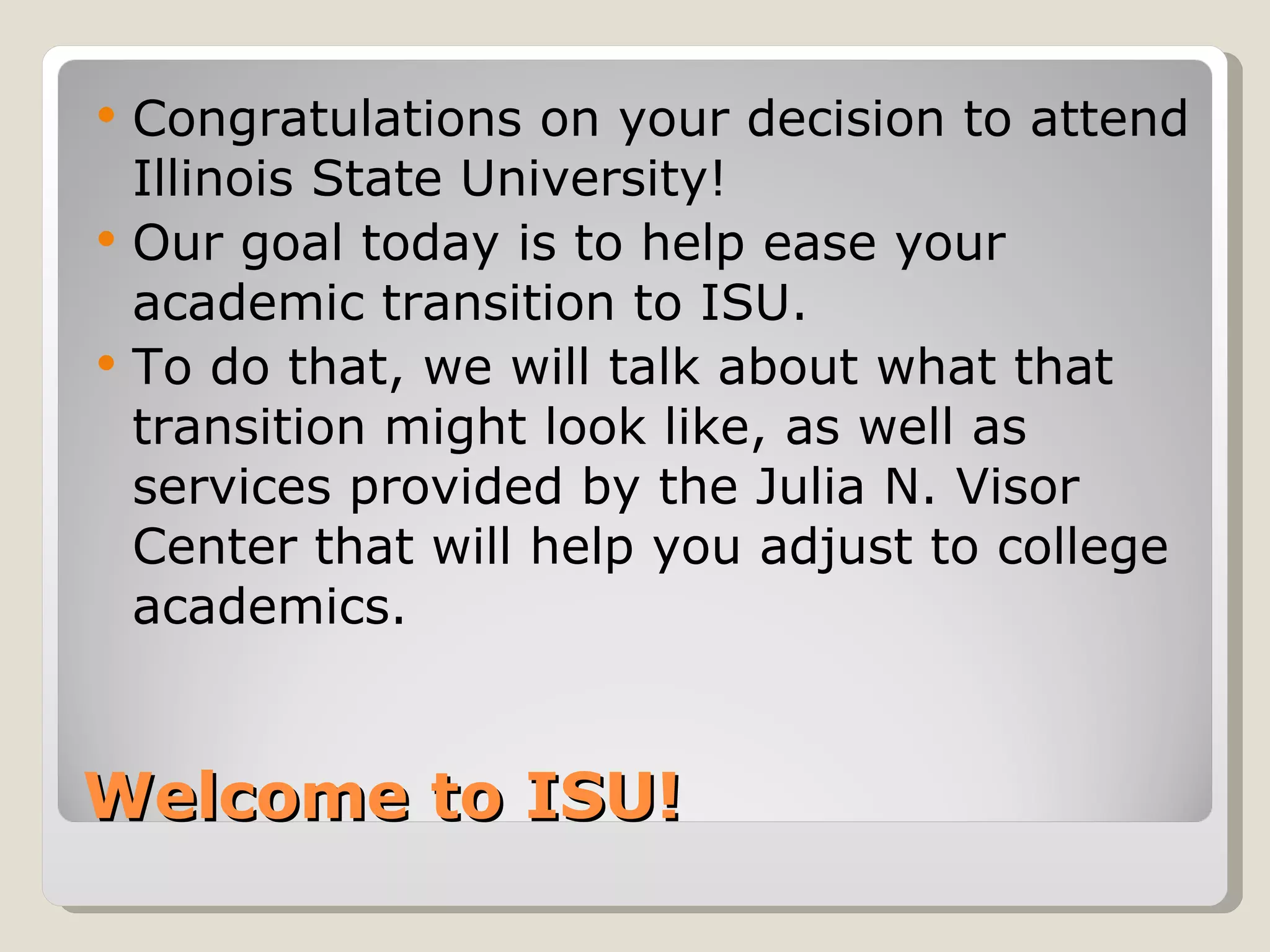 This document summarizes services provided by the Julia N. Visor Academic Center to help students adjust to the academic challenges of college. It discusses how college classes differ from high school in workload, responsibility, and assessment. The Center offers workshops on study skills, time management, and other topics. It also provides free tutoring in specific courses and writing assistance to help students succeed. Students are encouraged to utilize these services early in the semester.