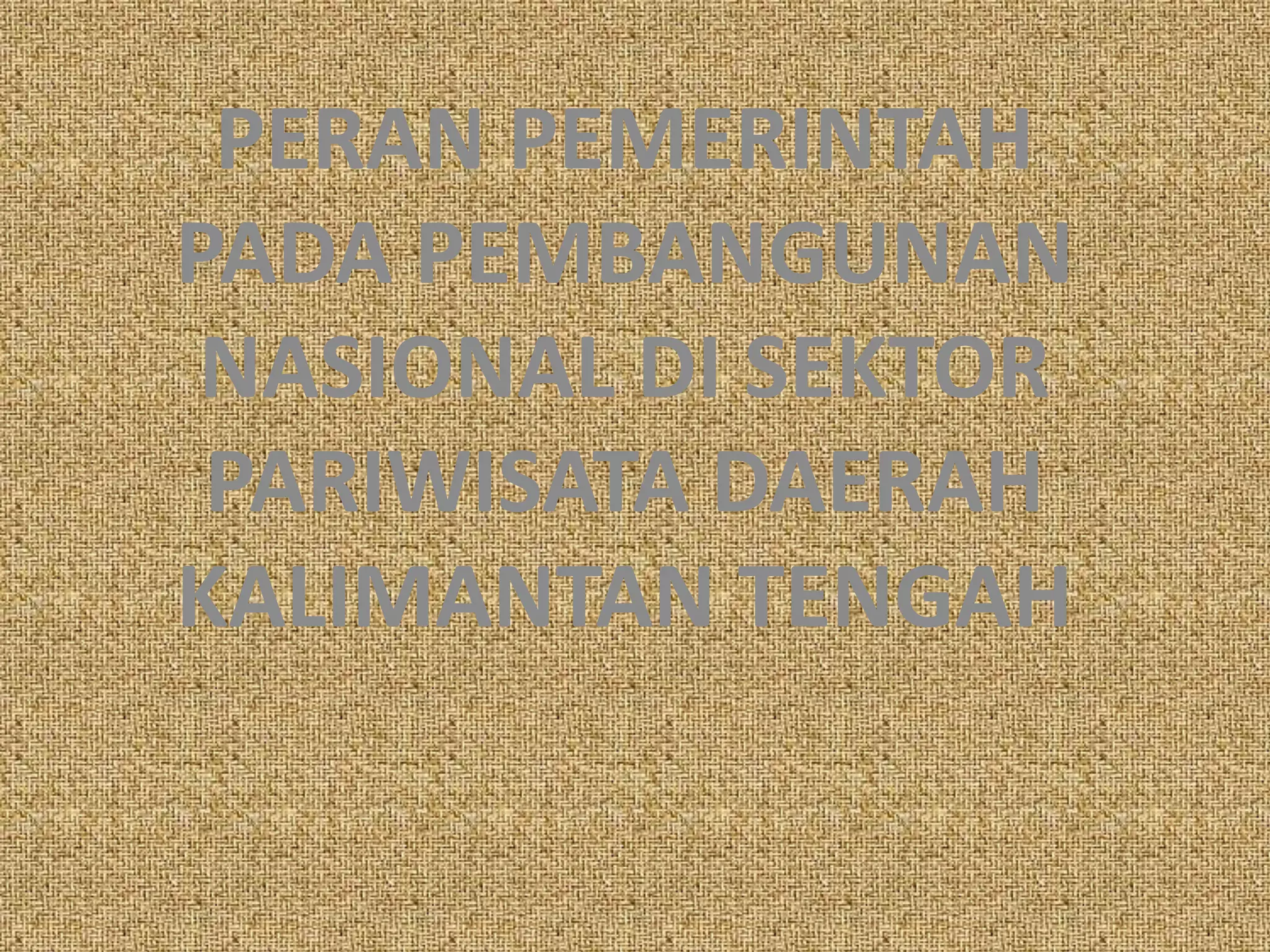 Pemerintah memainkan peran penting dalam pengembangan pariwisata di Kalimantan Tengah dengan menyediakan infrastruktur, fasilitas, pengaturan, dan promosi. Tujuannya adalah memberikan manfaat ekonomi, sosial, dan budaya kepada masyarakat serta meningkatkan pengetahuan tentang potensi pariwisata di daerah tersebut.
