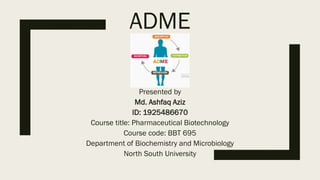 ADME stands for absorption, distribution, metabolism, and excretion, which are critical factors in pharmacokinetics that determine how drugs behave in the body. Absorption involves the entry of drugs into the bloodstream, distribution refers to how drugs spread through body tissues, metabolism is the conversion of drugs into metabolites, and excretion is the removal of drugs from the body. Understanding these processes is essential for determining optimal drug dosing, effects, and potential adverse reactions.