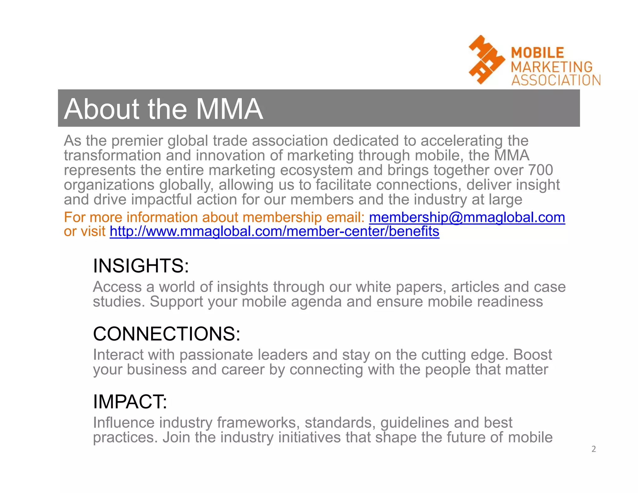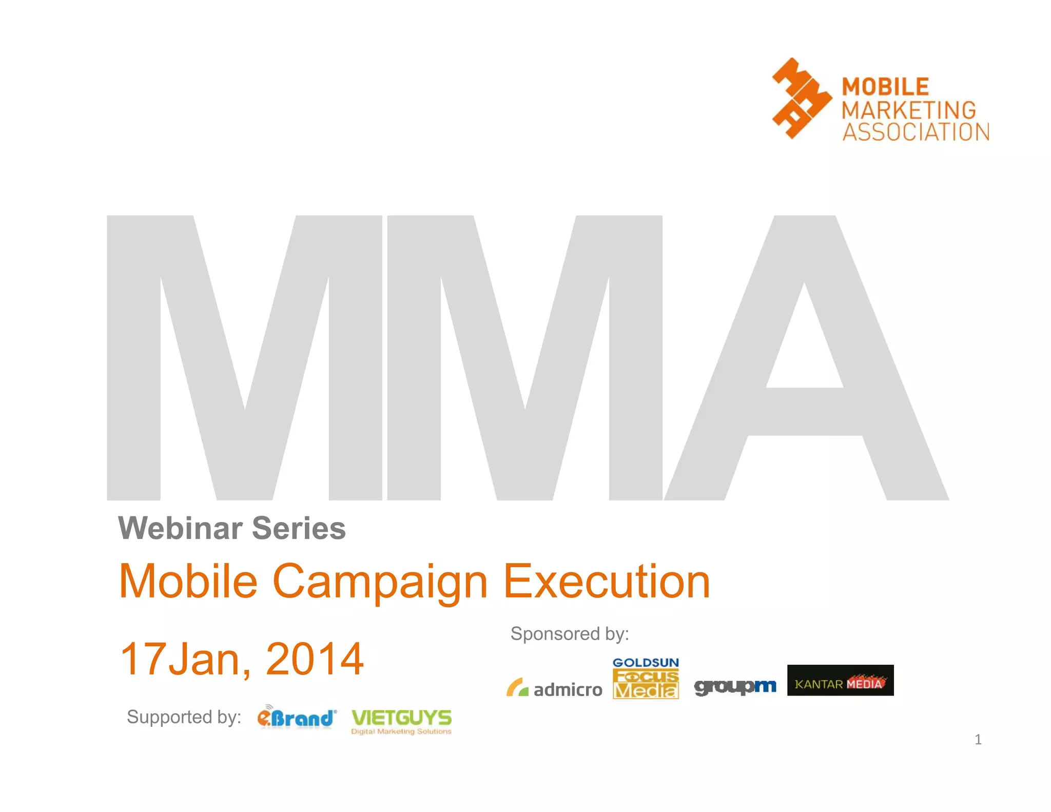 This document summarizes a webinar on mobile campaign execution from the Mobile Marketing Association. It includes presentations from mobile marketing experts on key success factors for mobile campaigns, mobile technologies, solutions, and measurement. A case study is presented on how Coca-Cola Hong Kong transformed a TV campaign into an interactive mobile app campaign for a slang word promotion. The webinar emphasizes that marketing strategies must include mobile and how mobile can drive engagement through interactivity and analytics.