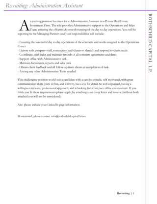An administrative assistant position is available at a private real estate investment firm, providing support to operations and sales teams. Responsibilities include coordinating contracts, liaising with clients and contractors, and maintaining records and reports. The ideal candidate is self-motivated, detail-oriented, and possesses strong communication skills, with applications requiring a cover letter, resume, and LinkedIn information.