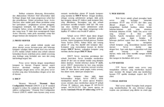 Dokumen ini menjelaskan berbagai aspek administrasi server dalam jaringan, termasuk kebutuhan server seperti DNS, Active Directory, proxy server, DHCP, web server, FTP server, email server, game server, dan database. Setiap jenis server memiliki fungsi spesifik dan penting dalam mengelola sumber daya dan layanan jaringan. Selain itu, dijelaskan pula tentang sistem operasi jaringan dan sejarah Linux sebagai sistem operasi yang berkembang dari proyek hobi menjadi komponen penting dalam infrastruktur IT modern.