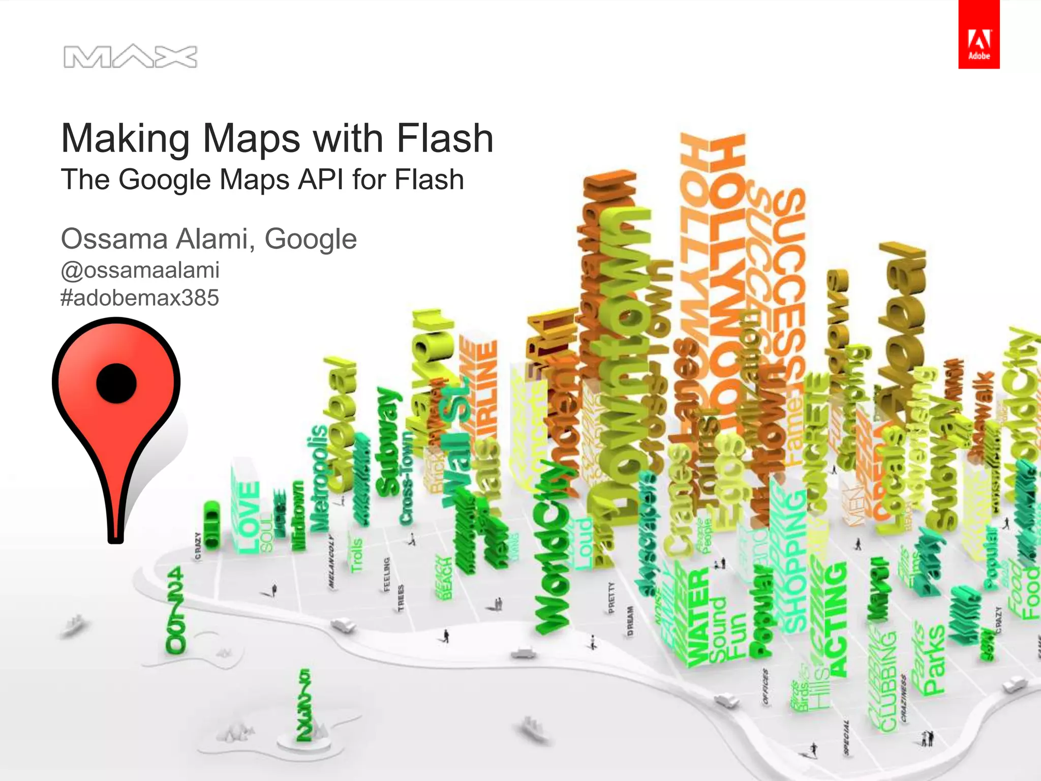 The document introduces the Google Maps API for Flash, detailing its capabilities for creating diverse mapping applications, including support for 3D maps and various features like geocoding and custom markers. It provides examples of ActionScript code for building a map interface, adding markers, and implementing features such as driving directions and map recoloring. Additionally, the document offers resources for further development and customization.