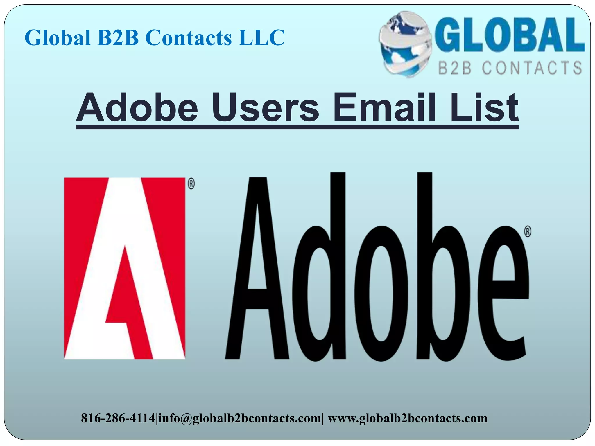 Global B2B Contacts LLC offers a comprehensive mailing list service tailored for businesses seeking targeted marketing solutions. Their database includes detailed information about various professional titles, ensuring high response and conversion rates for marketing campaigns. They emphasize data accuracy and provide a free trial consultation to potential clients.