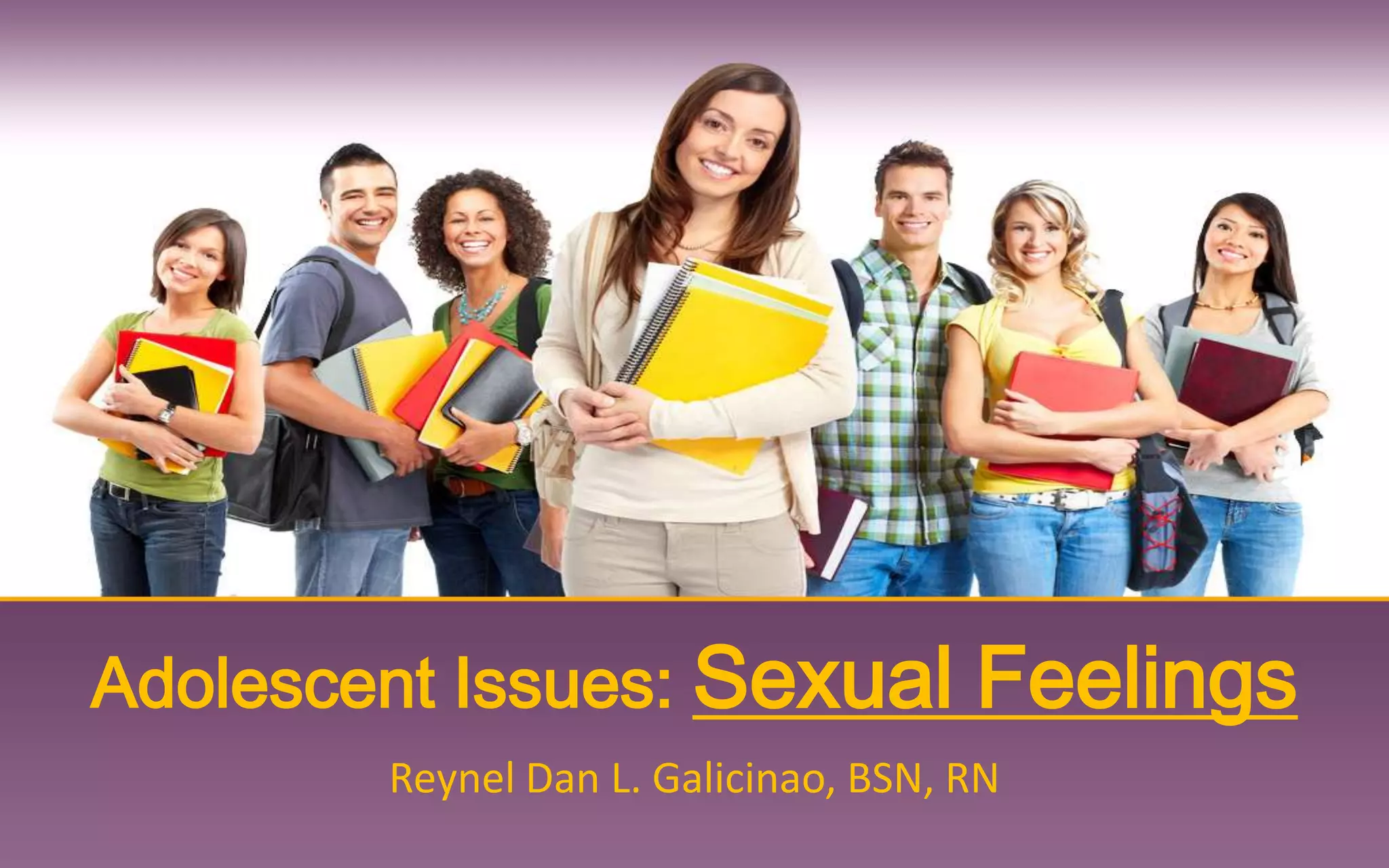 This document discusses adolescent issues related to sexual feelings and relationships. It addresses topics like crushes, dating, and saying no to pressure to have sex. Specifically, it notes that crushes don't usually last long. It also emphasizes the importance of friendship as a foundation for good relationships and communicating openly about desires and boundaries. The document provides advice for both girls and boys on navigating relationships and sexuality during adolescence.