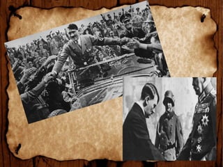 Adolf Hitler was born in 1889 in Austria-Hungary and showed an early interest in art but was rejected from art school. He moved to Munich in 1913 and served in the German army during World War 1. After the war, he joined the German Workers' Party and renamed it the Nazi Party, taking control in 1921. As Chancellor of Germany from 1933, he grew the party rapidly and abolished democracy, becoming a dictator. He violated the Treaty of Versailles and invaded several countries, plunging Europe into World War 2. In 1945, with the Soviet army advancing on Berlin, Hitler committed suicide in his bunker.