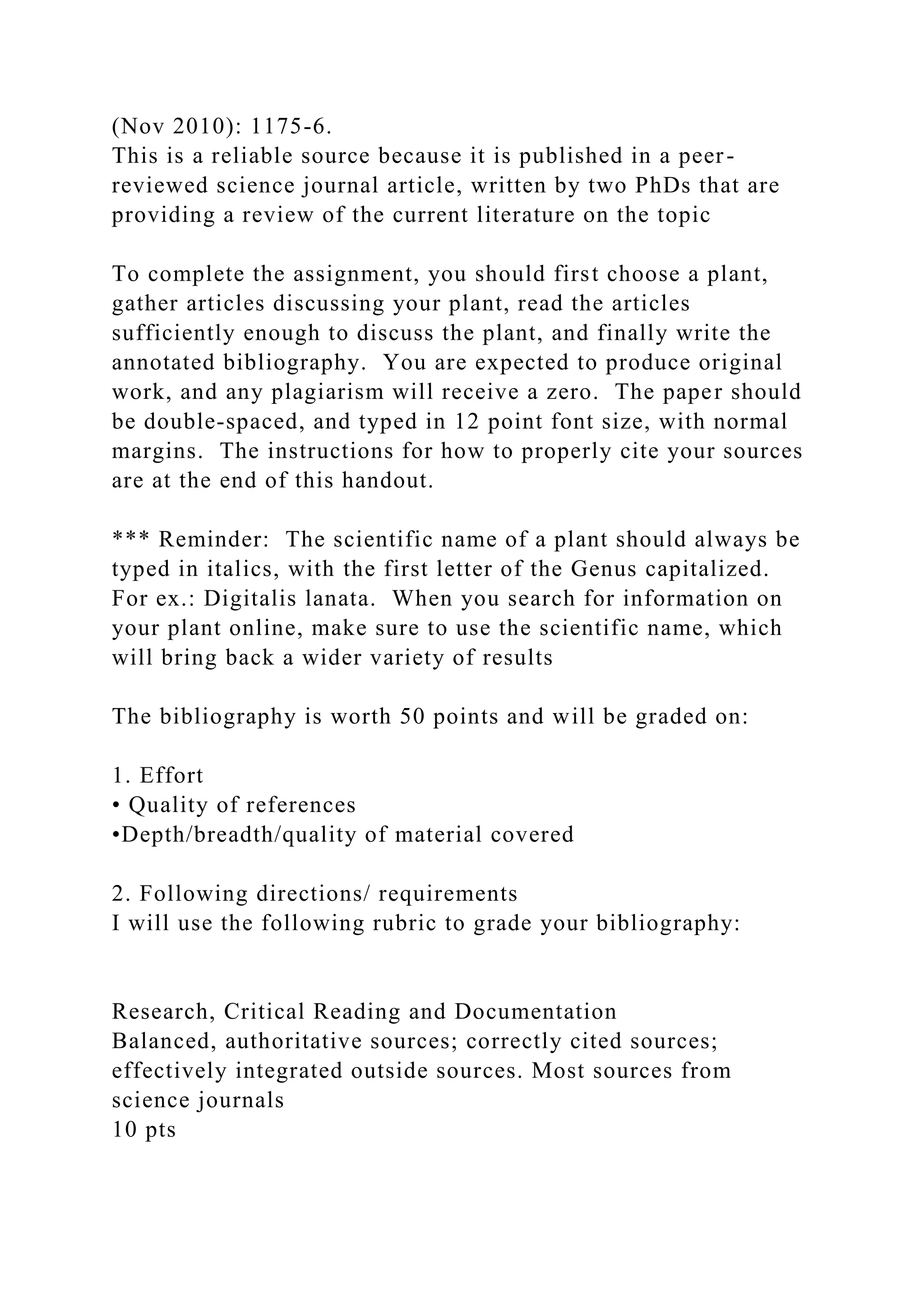 The 'adopt-a-plant' project entails selecting a plant, researching its biology, and preparing an annotated bibliography listing 10 interesting facts, their relevance, and reliable citations. Students must ensure proper citation formats, avoid plagiarism, and engage with peer-reviewed sources. Evaluation criteria include the quality of references, mechanical accuracy, and adherence to project guidelines.