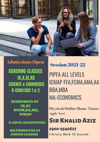 SIR KHALID AZIZ Commerce Coach of I-COM, ADC/B-COM ICMAP, PIPFA MA-ECONOMICS O/A Levels BBA/MBA