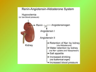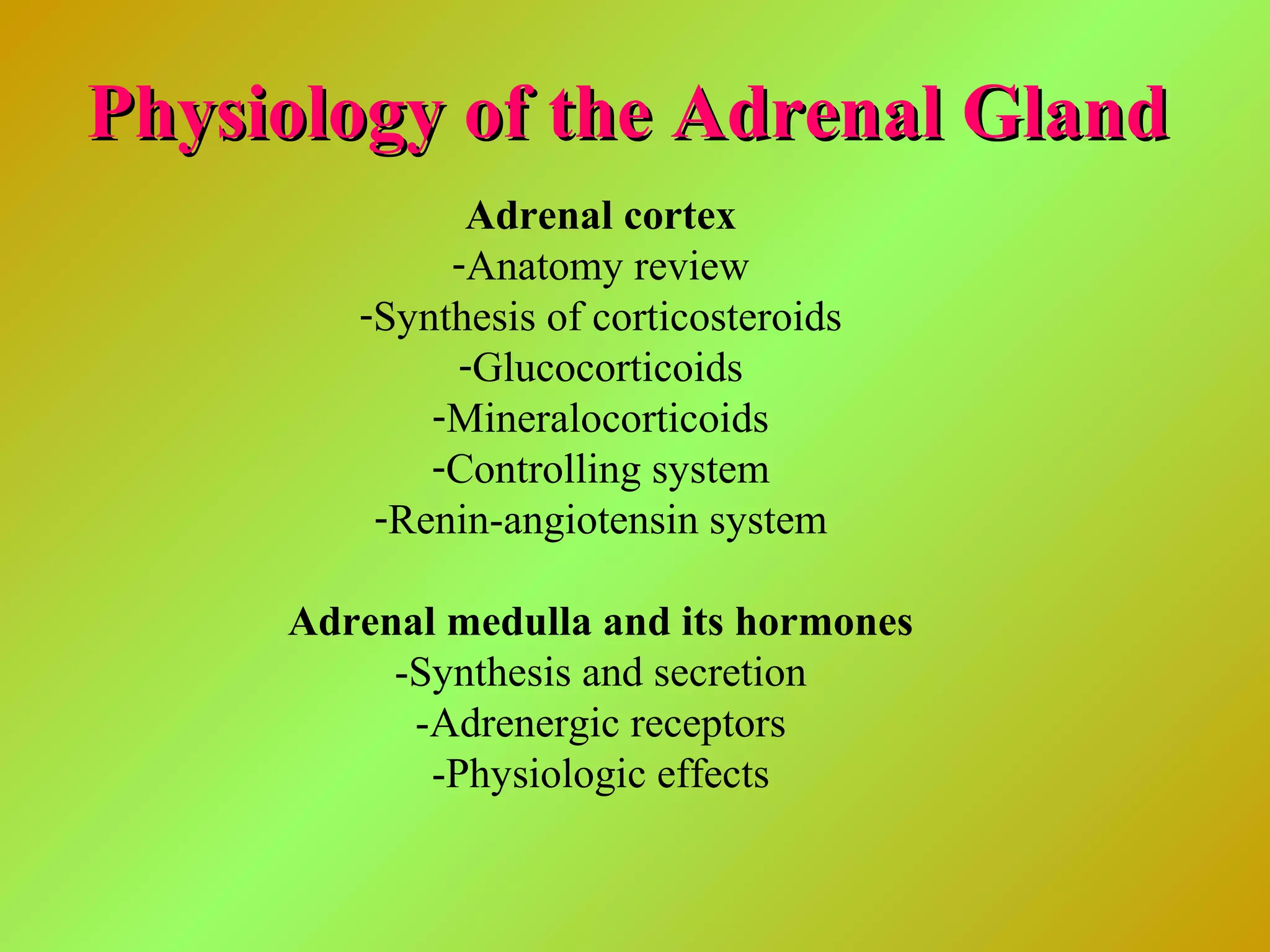The adrenal glands consist of an outer cortex and inner medulla. The cortex produces mineralocorticoids like aldosterone and glucocorticoids like cortisol. Cortisol regulates metabolism and immune function. Aldosterone regulates sodium and potassium levels. Their release is controlled by the HPA axis and renin-angiotensin system. The medulla produces catecholamines like epinephrine and norepinephrine which increase heart rate and blood pressure through adrenergic receptors. Together these hormones help regulate vital processes and the stress response.