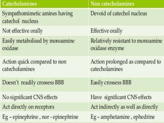 The document discusses the sympathetic nervous system and adrenergic receptors. It describes: