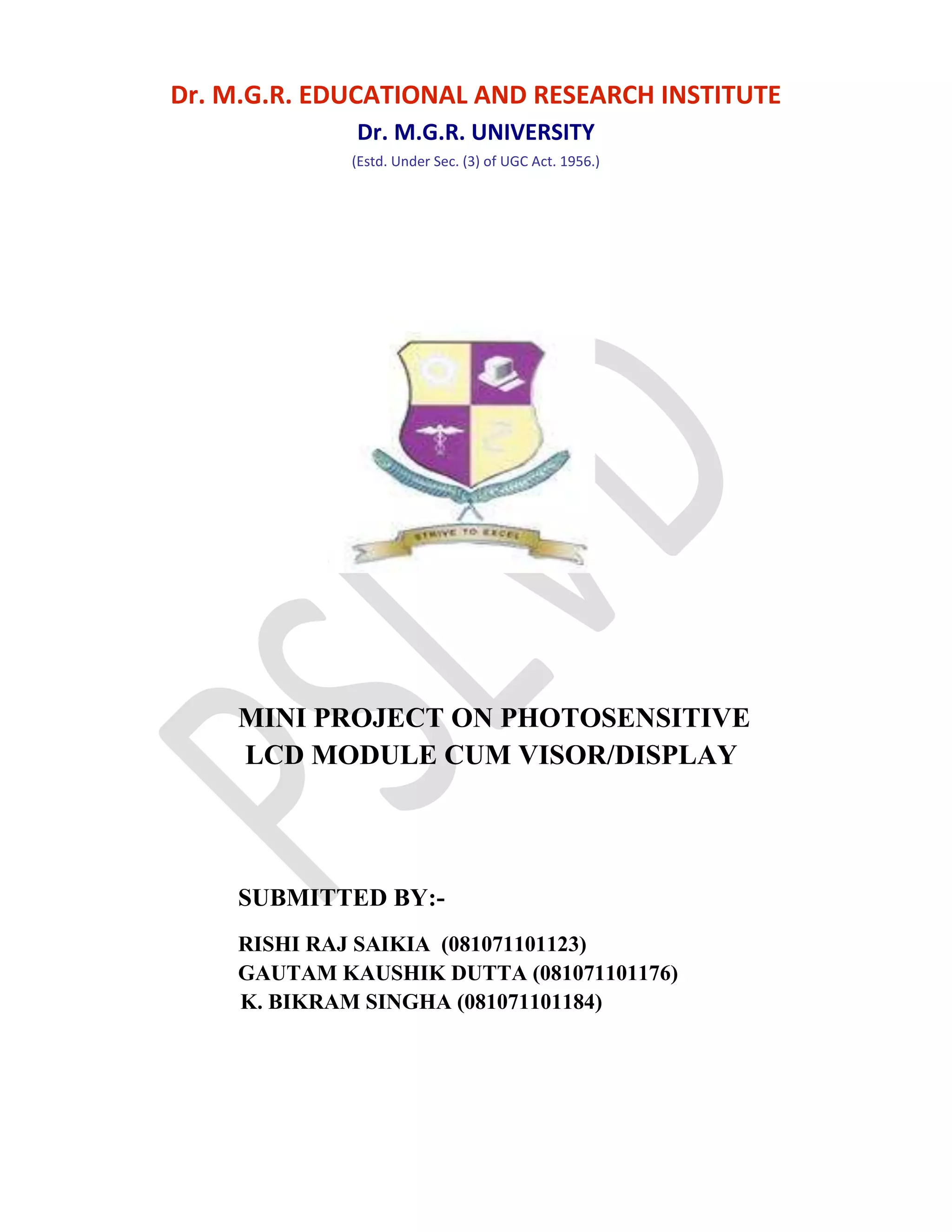 This document describes a photo-sensitive LCD module that can be used as both a light-controlling visor and a multi-display. It uses two comparator circuits to control the LCD in either visor or display mode. In visor mode, the LCD acts as a light filter, becoming darker with increasing light intensity to prevent excessive light. In display mode, the number of LEDs lighting up is adjusted based on light intensity to keep the display visible, even in bright sunlight. The system provides an intelligent display solution for mobile screens and other uses that can automatically adjust based on ambient light conditions.