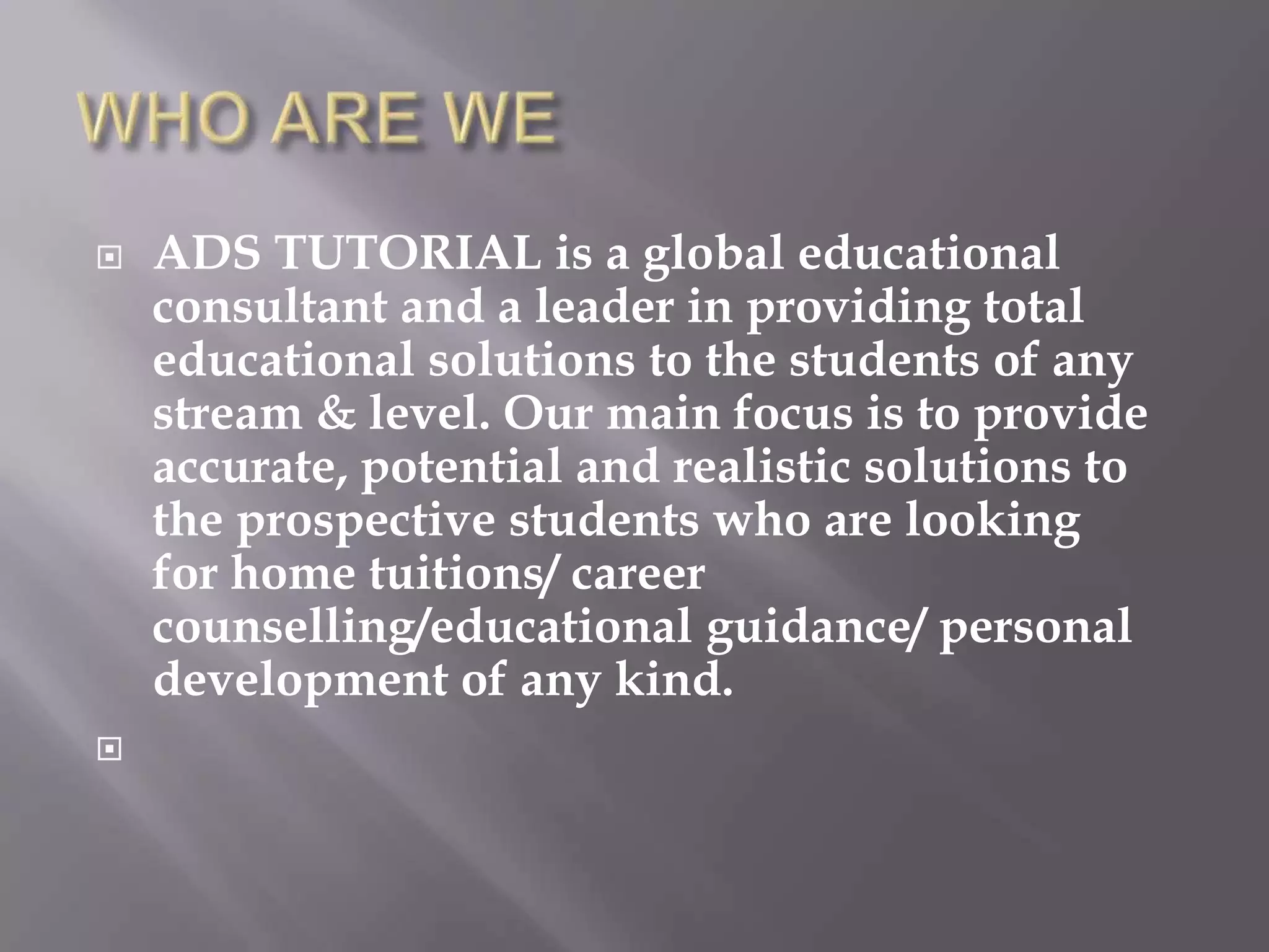 ADS Tutorial is a leading global educational consultant and tutorial service based in South Kolkata, established in 2003, focusing on home tuitions, career counseling, and educational guidance for students of all levels. They offer a variety of tuitions, professional courses, and personal development initiatives, along with individual attention from experienced faculty. Additionally, they provide home tutors and career counseling across various subjects and educational boards.