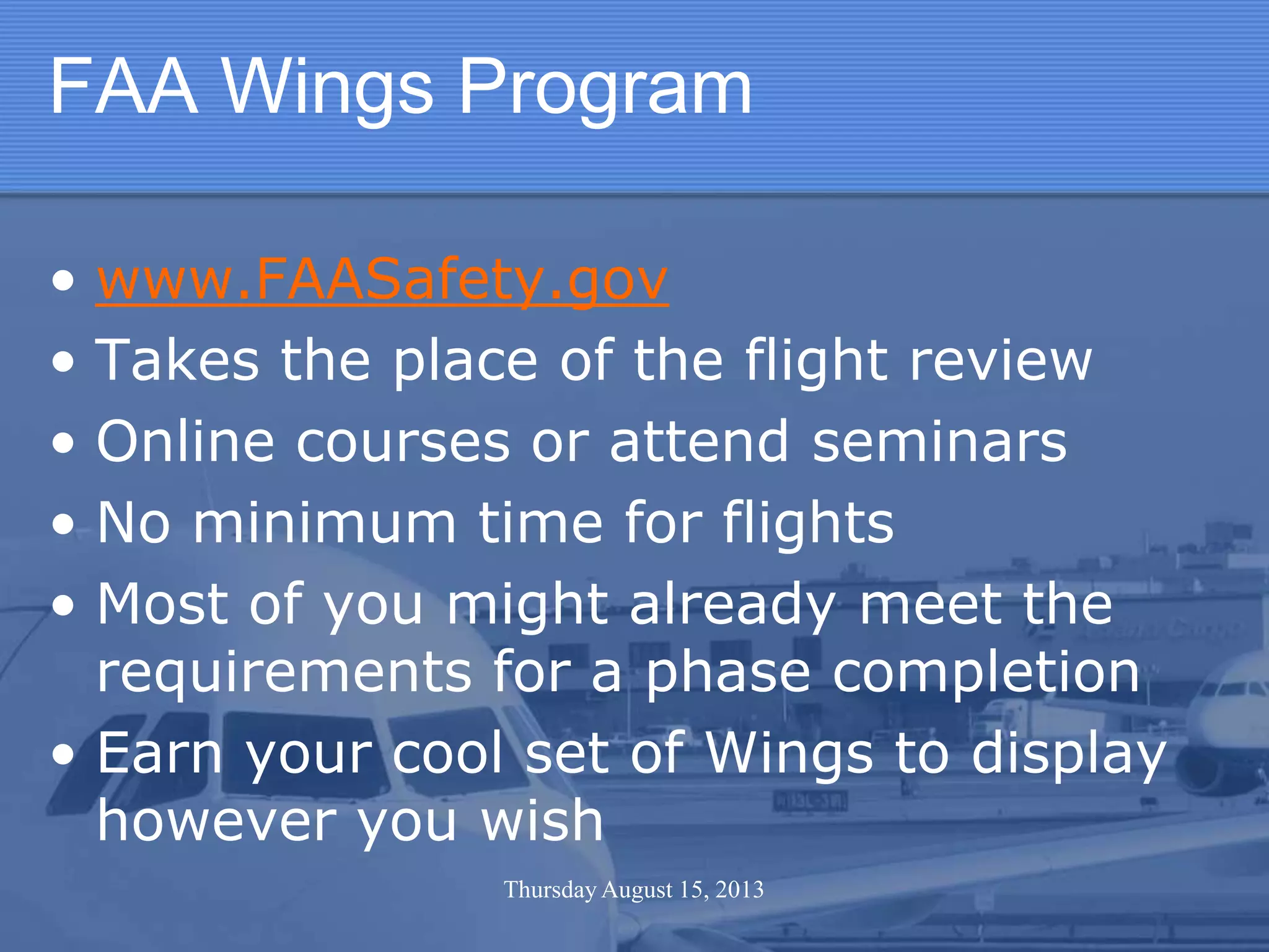 This document discusses ADS-B (Automatic Dependent Surveillance - Broadcast), a technology that will replace radar as the primary means for air traffic controllers to track aircraft. It operates using two modes: ADS-B Out broadcasts data from aircraft, while ADS-B In receives data in the aircraft. By 2020, all aircraft will be required to have ADS-B Out equipment installed. ADS-B uses GPS and broadcasts aircraft's location, speed, and other data to any aircraft or ground station equipped to receive it. This allows pilots and controllers to see the same information simultaneously.