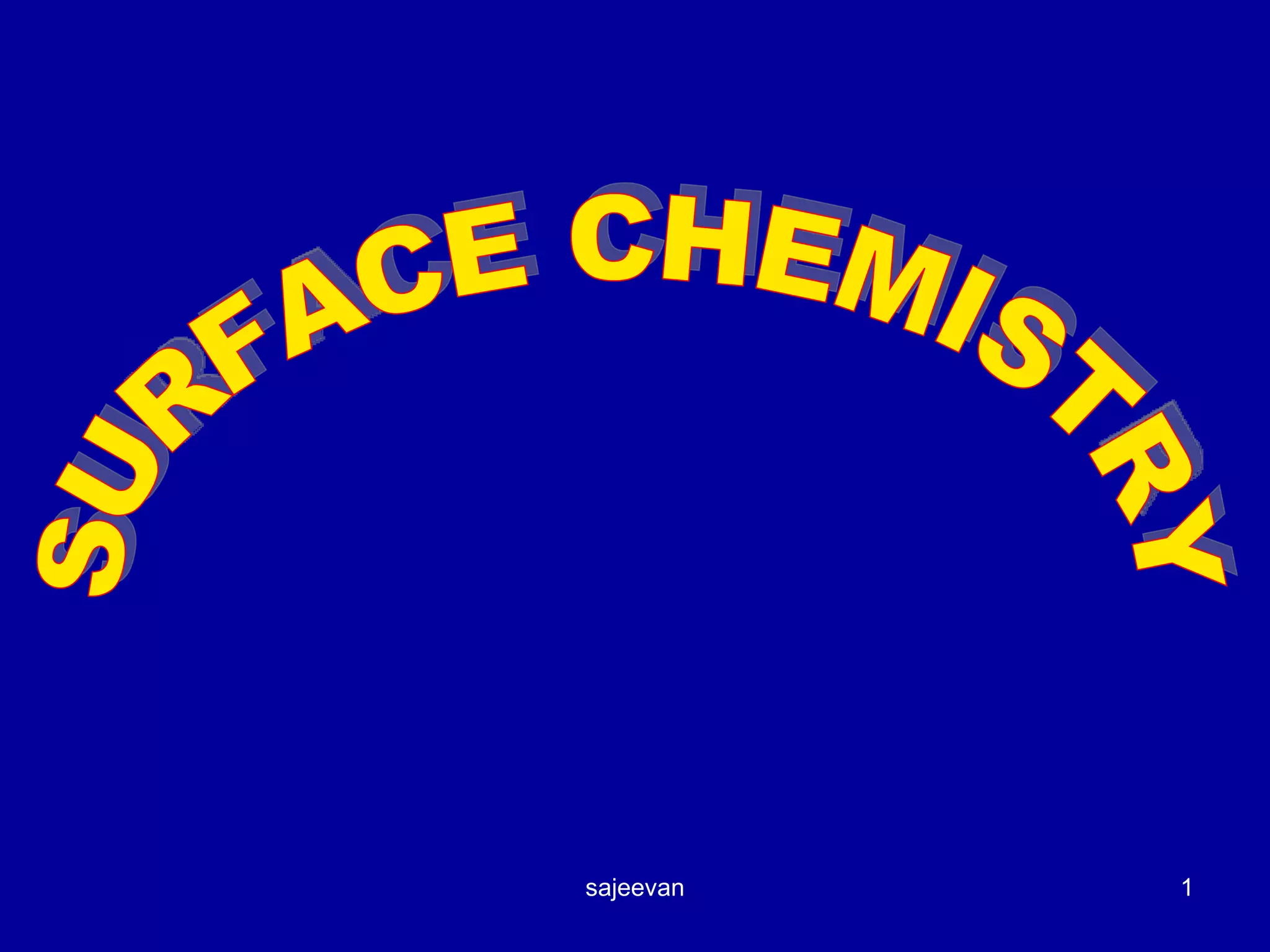 Surface chemistry deals with phenomena that occur at interfaces between phases. Adsorption is a key phenomenon where molecules accumulate at surfaces rather than in the bulk. Some materials like charcoal and silica gel act as good adsorbents due to their large surface areas. Adsorption involves molecules of gases, liquids, or dissolved substances concentrating on the surface of an adsorbent rather than in its bulk.