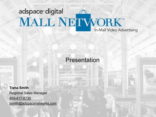 This document provides contact information for Tisha Smith, who is the Regional Sales Manager for ADS Pacenetworks. It lists Tisha Smith as the contact, gives her title of Regional Sales Manager, and provides her phone number and email address for ADS Pacenetworks.