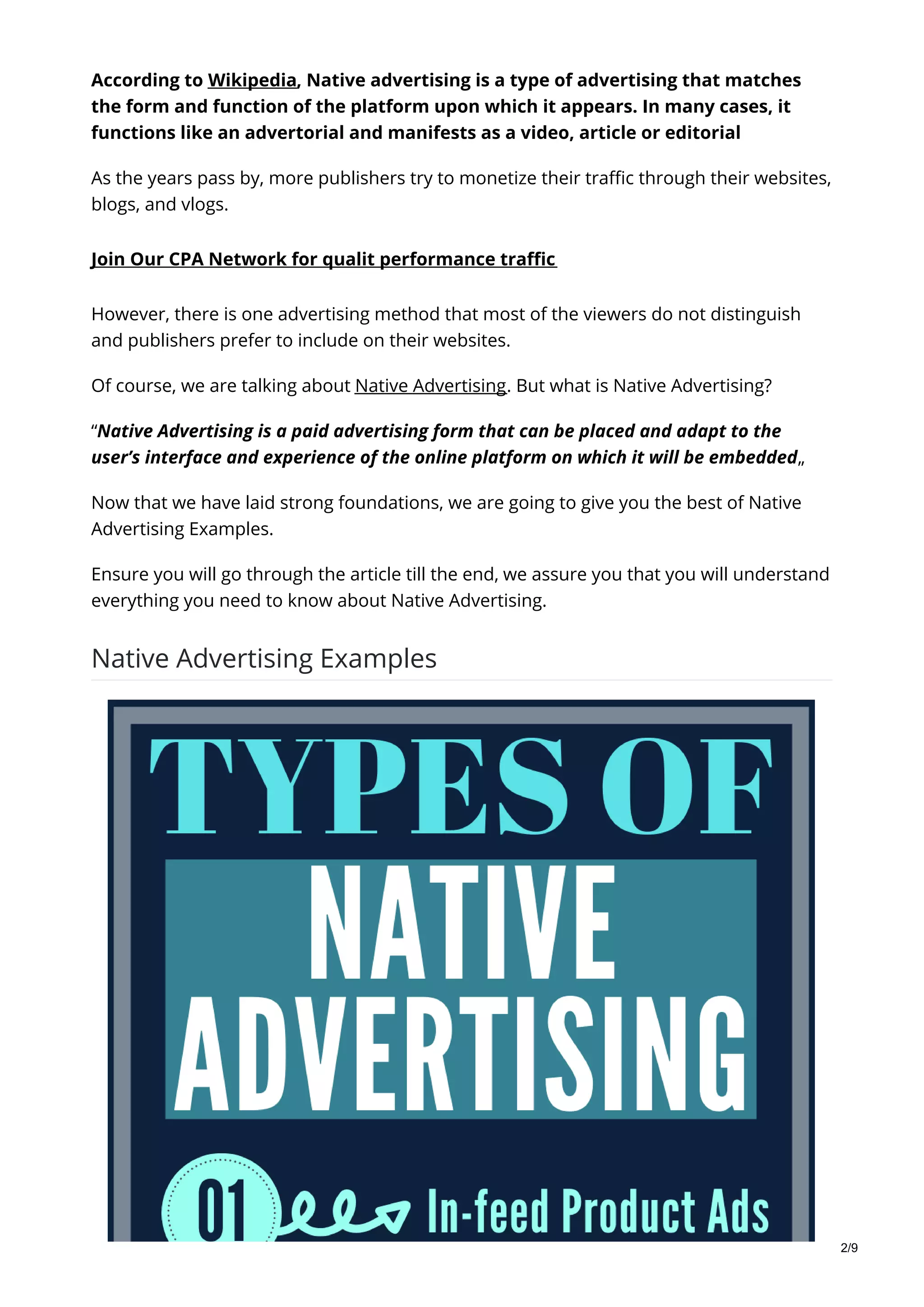 The document discusses native advertising, explaining its definition and potential benefits for businesses and publishers. It highlights various types of native ads, including in-feed ads, branded content, and content recommendation ads, while emphasizing their effectiveness in targeting audiences and improving conversion rates. The conclusion suggests that native advertising is a user-friendly and profitable approach for both advertisers and publishers.