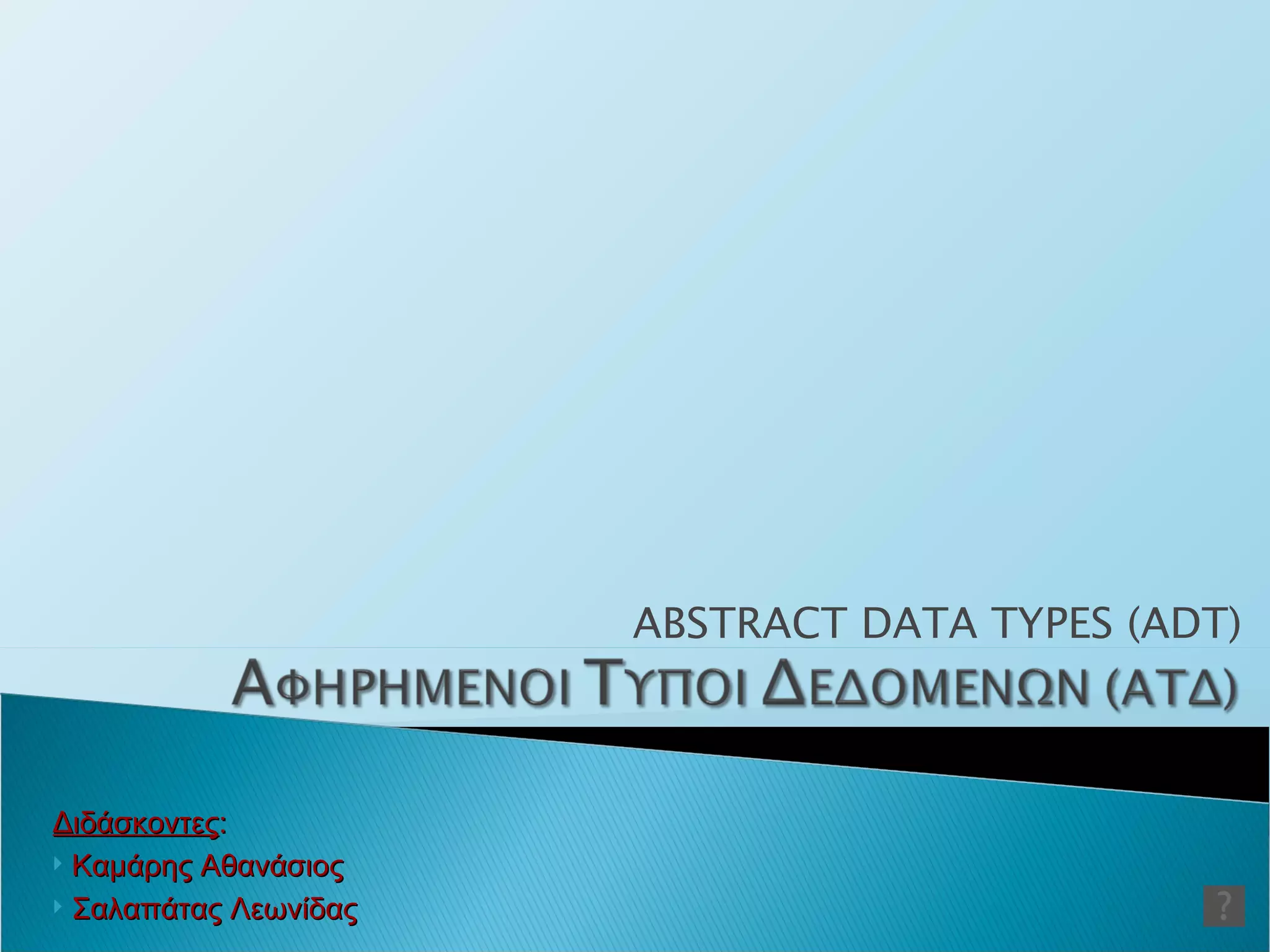 ΑΤΔ ΣΤΟΙΒΑ Βασικές Πράξεις Δημιουργία Κενή Ώθηση push Εξαγωγή pop