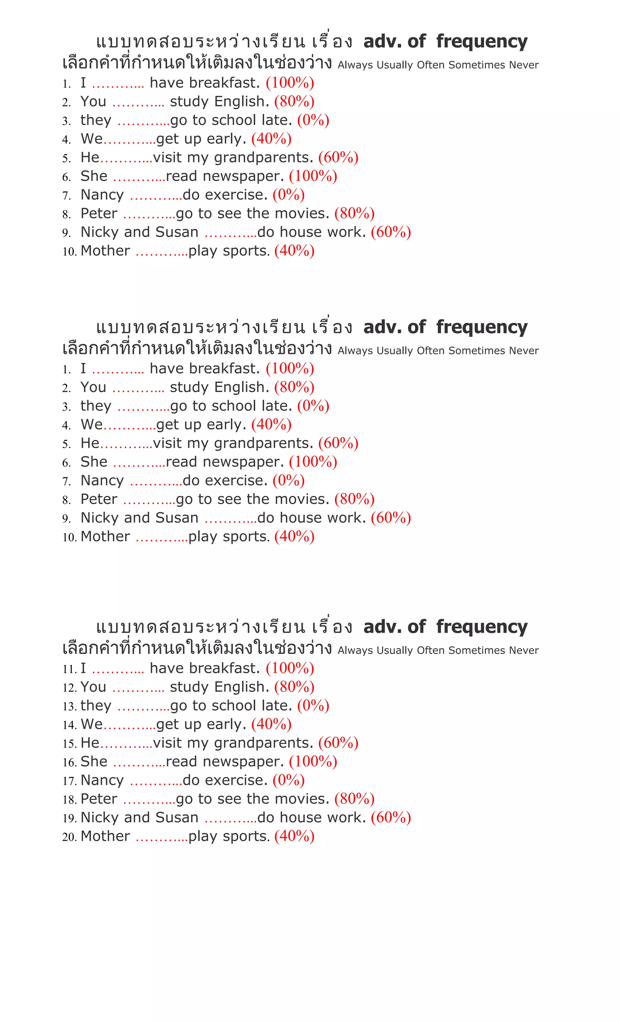 แบบทดสอบระหว่ า งเรีย น เรื ่ อ ง adv. of frequency