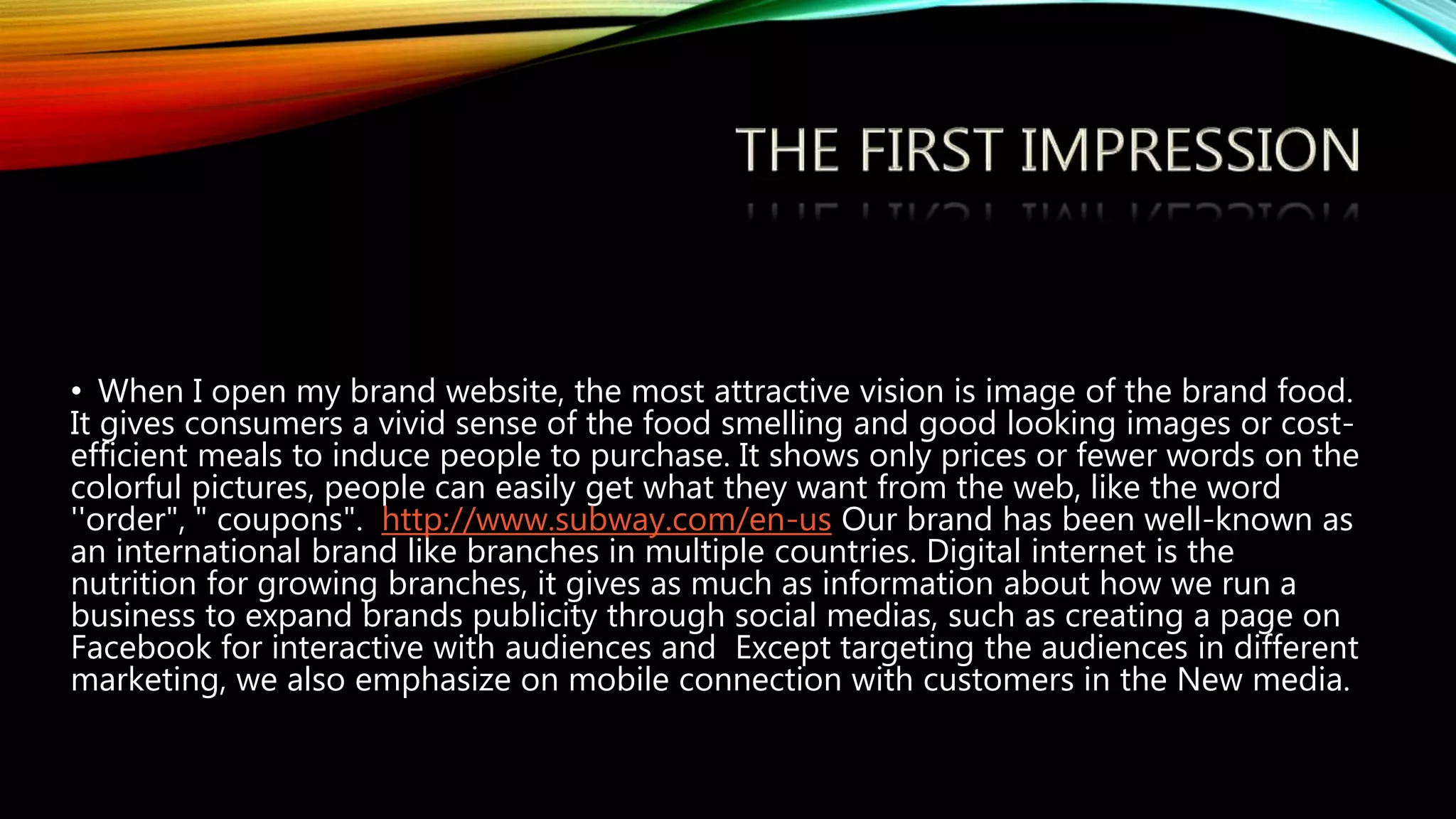 The document discusses strategies for using digital marketing and social media to attract potential customers and build brand loyalty. It emphasizes understanding target audiences, their needs and behaviors in order to better promote products and services. Data from websites, social platforms, and mobile apps is used to track customer engagement and measure key performance indicators.