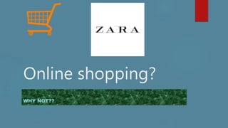 Zara aims to increase revenue by selling more products online through Zara.com. The document proposes a digital marketing strategy targeting people aged 18-40 using social media platforms like Facebook, Instagram, Twitter and Pinterest to promote new arrivals, fashion shows and contests. The strategy seeks to increase brand awareness and drive online sales. A $3 million budget is allocated over 12 months for campaigns on social media, including daily Facebook ads and posts, as well as promoted pins on Pinterest and Instagram contests.