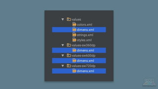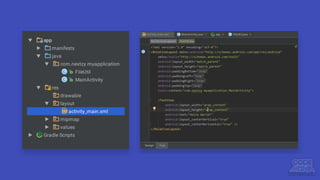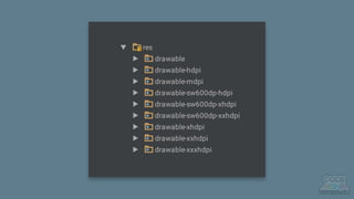 The document provides a comprehensive guide on designing Android layouts, including the use of various layout types such as LinearLayout, RelativeLayout, and FrameLayout. It discusses best practices for specifying dimensions, utilizing drawable resources, and implementing styles for UI components. Additionally, it covers performance considerations related to view inflation and layout structures to ensure efficient app design across different screen densities.