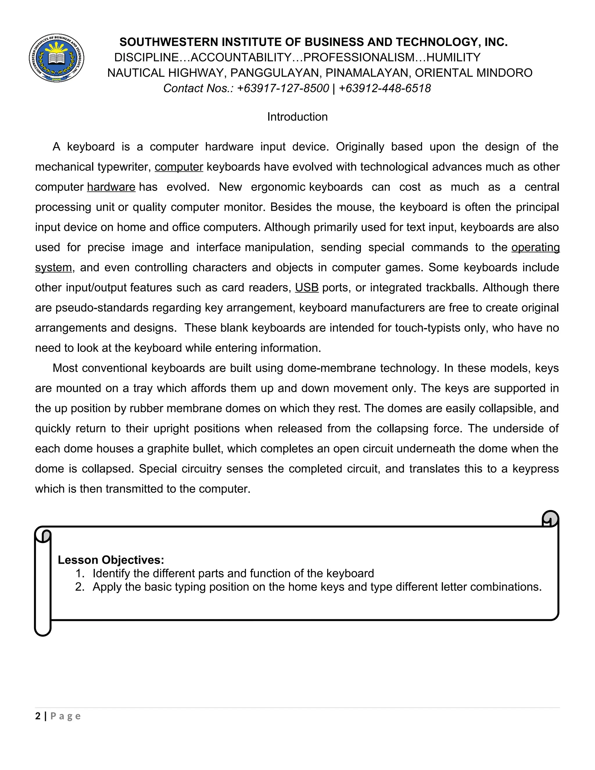 home keys. Once your index fingers learn the location of the correct Home Keys, placing your