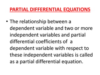 - The definition of a partial differential equation as a relationship between a dependent variable and two or more independent variables.