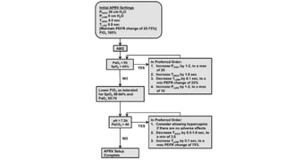 The document discusses the management of a difficult patient on a ventilator, detailing case specifics, ventilation strategies, and medication options like ketamine and heliox for improving respiratory function. It emphasizes the importance of careful monitoring and adjustment of ventilator settings, alongside the use of therapeutic interventions such as bronchoscopy and ECMO for severe cases. It also highlights potential complications and the need for a structured response to refractory hypoxemia in ventilated patients.