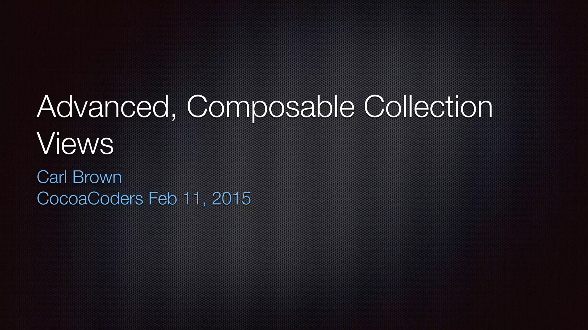 The document discusses advanced composable collection views, inspired by Apple's iTunes Connect app and information from the WWDC 2014 session on advanced user interfaces. It details the structure and components necessary for implementing a collection view, highlighting its flexibility and the ability to create complex interfaces using reusable building blocks. The talk emphasizes that this structure favors composition over inheritance and provides a framework for developers to build custom interfaces for their apps.