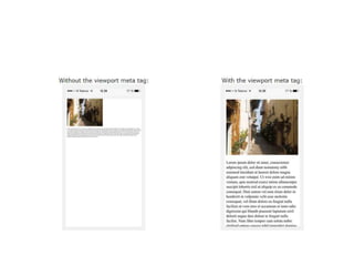 3. Responsive design uses liquid layouts, media queries, and viewport settings to automatically adapt content for different screen sizes.