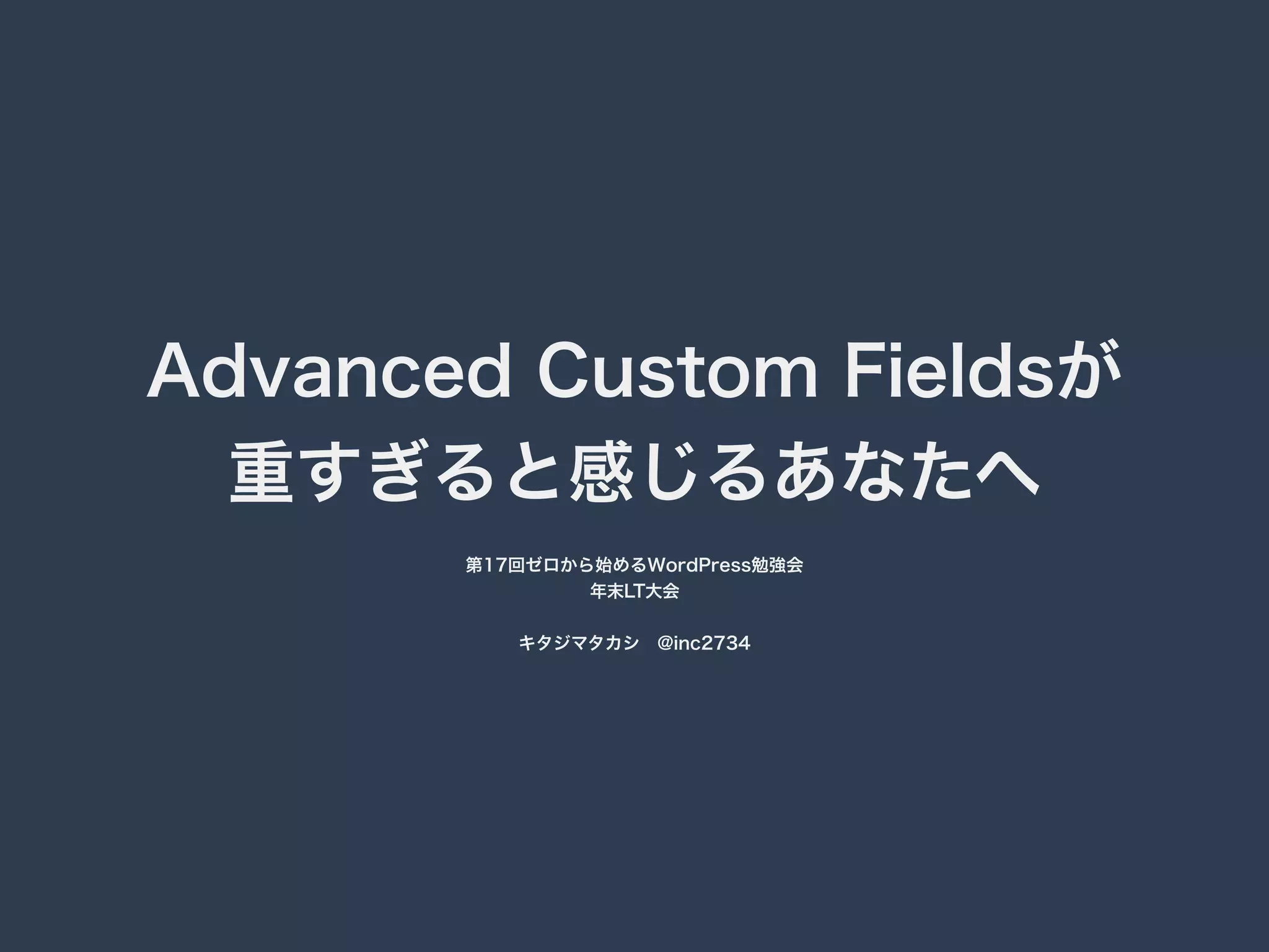 重すぎると感じるあなたへ 第17回ゼロから始めるWordPress勉強会 年末LT大会 キタジマタカシ @inc2734