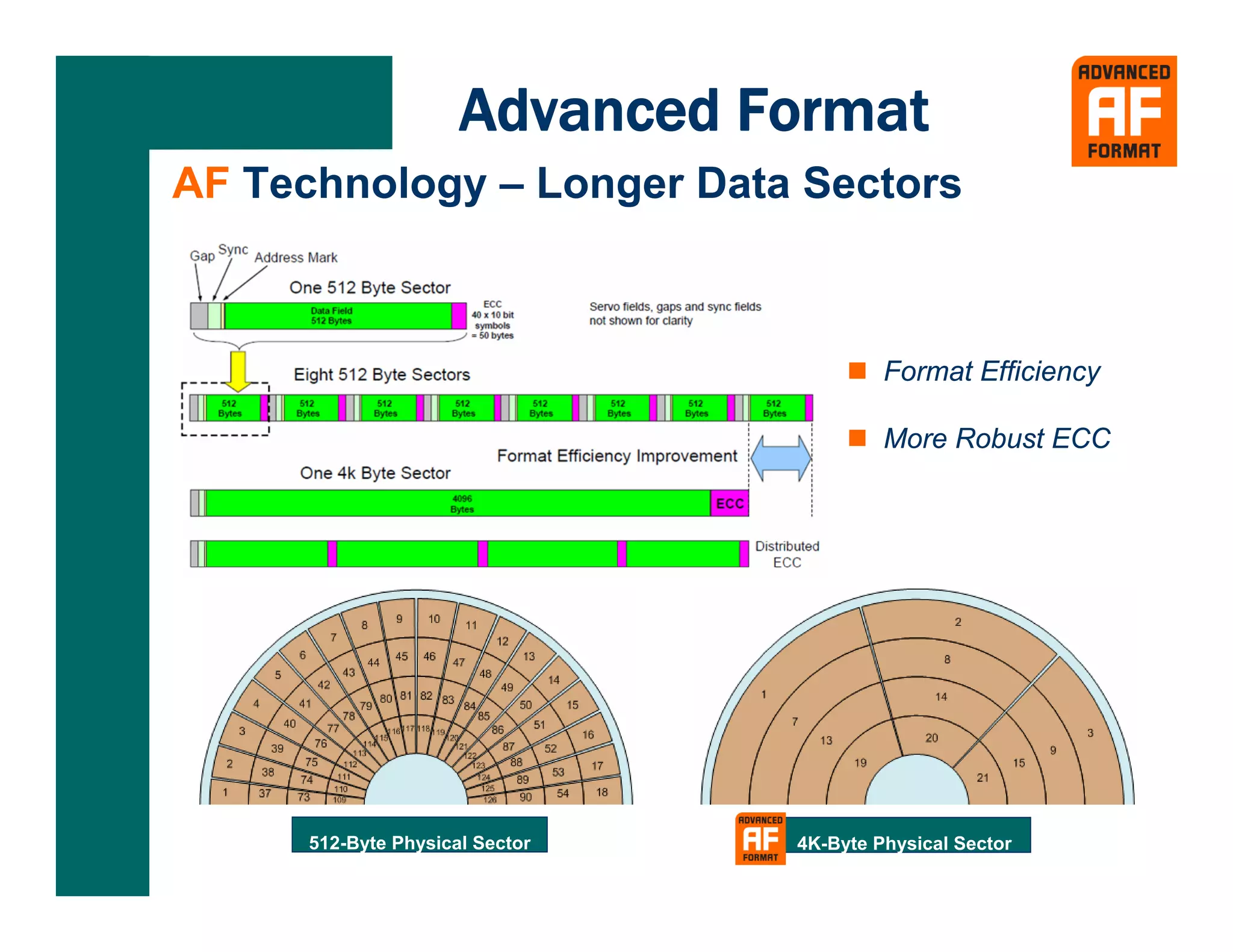 2) While Advanced Format provides benefits, it requires operating systems and software to be "Advanced Format aware" to avoid issues with write performance related to sector alignment.