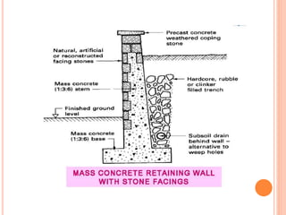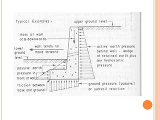 The document outlines a course on advanced foundation design by Mr. Gaurav Jain, focusing on building upon knowledge from the AFD lab. Students will gain a deeper understanding of foundation analysis, choice of design parameters, and advanced topics such as shallow footings, pile foundations, wells and caissons, and retaining structures. Key contents include various types of retaining walls, including cantilever and counter-fort retaining walls.