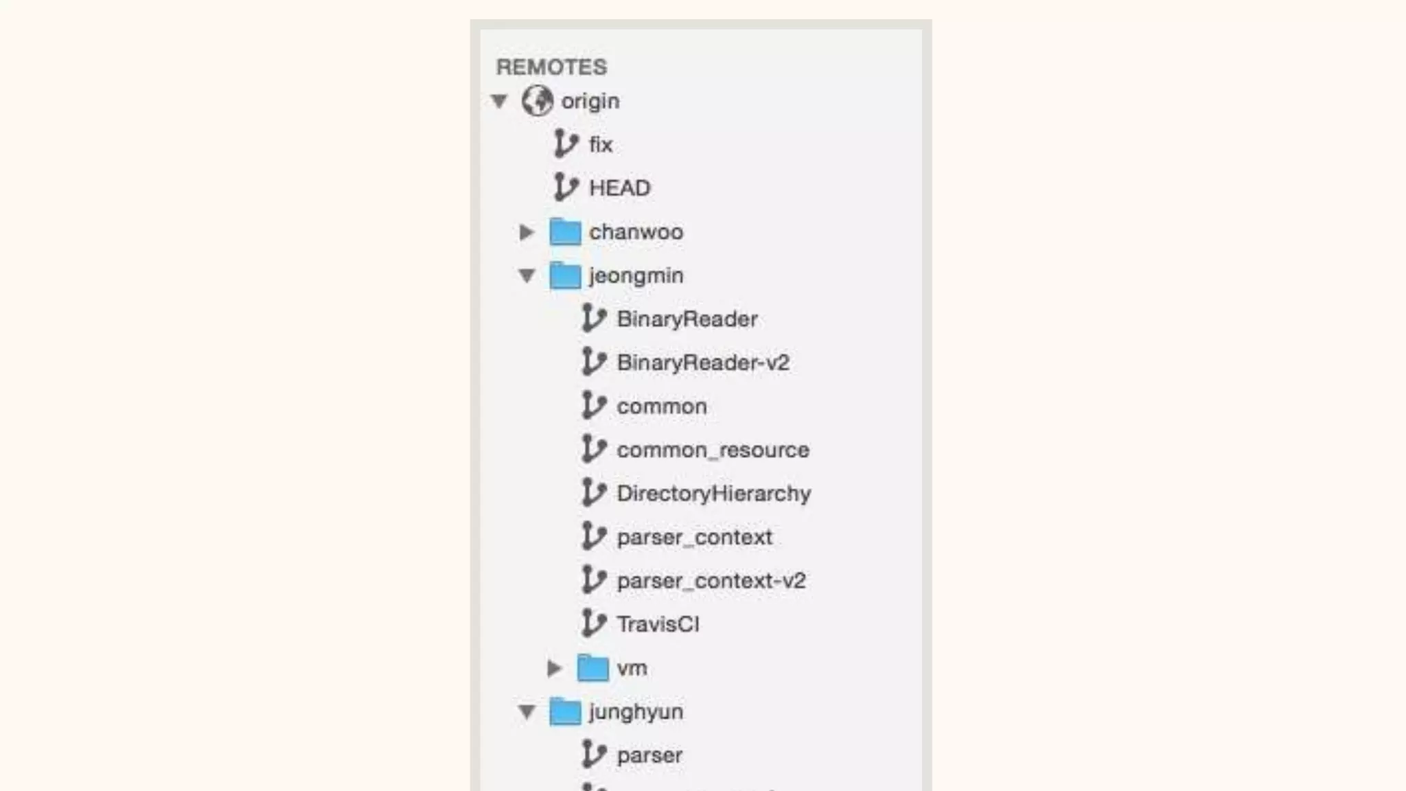다른 개발자들도 B에서 브랜치를 쳤다면?