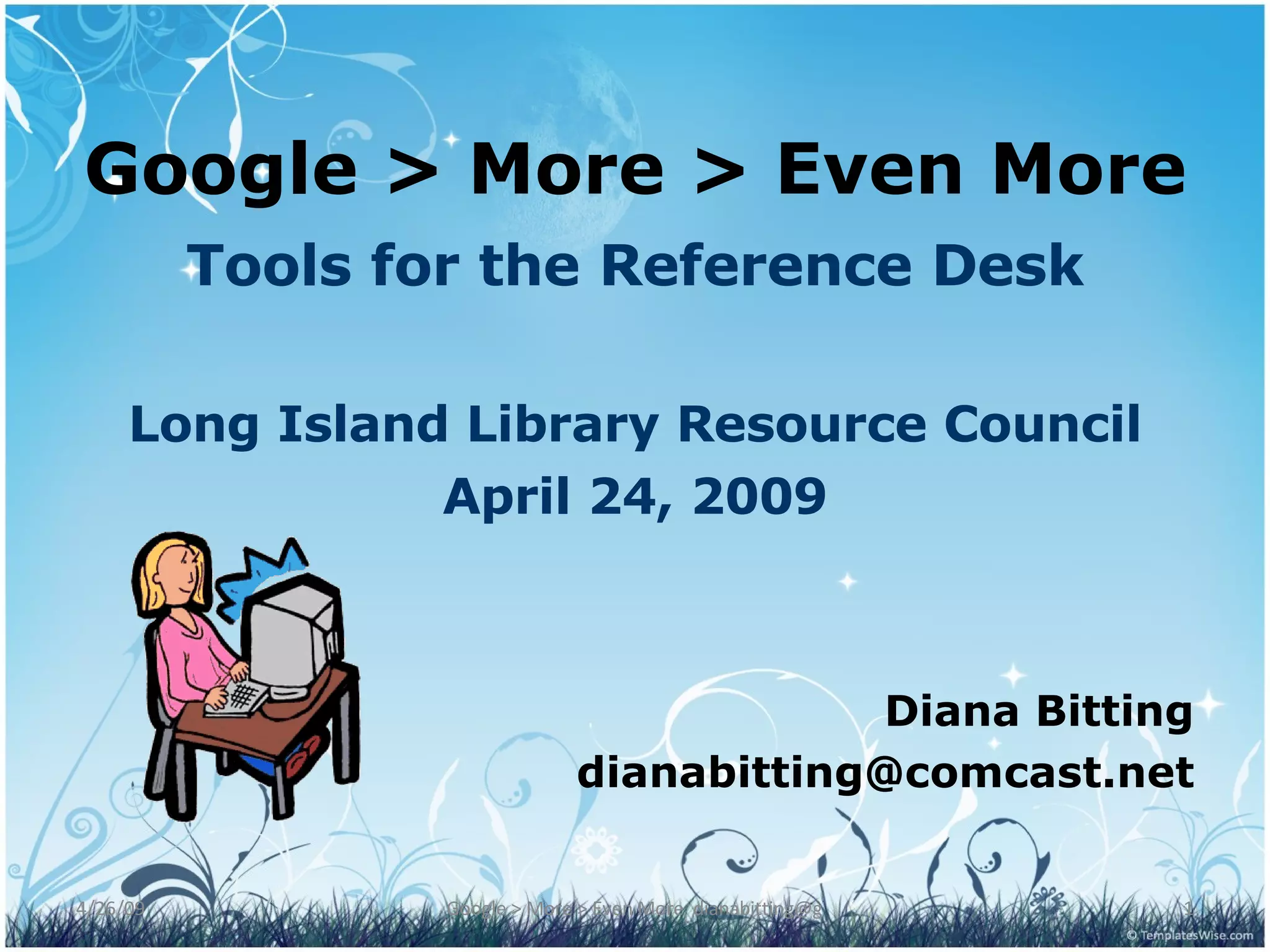 The document discusses various Google tools and features useful for reference librarians, including advanced search capabilities, everyday web search functionalities, and personalized interfaces through iGoogle. It highlights specific tools like custom search engines and special search features such as weather forecasts, flight status, and dictionary definitions. Additionally, it provides information on how to build and customize an iGoogle interface for efficient reference work.