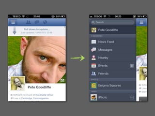 This document is a presentation by Pete Goodliffe aimed at programmers with prior iOS experience who want to explore advanced topics in iOS development. It covers using Objective-C effectively, exploiting iOS technologies, various coding idioms, and strategies for creating polished applications, along with case studies of successful apps. The talk also discusses interface design, advanced coding techniques, and audio functionalities within iOS.