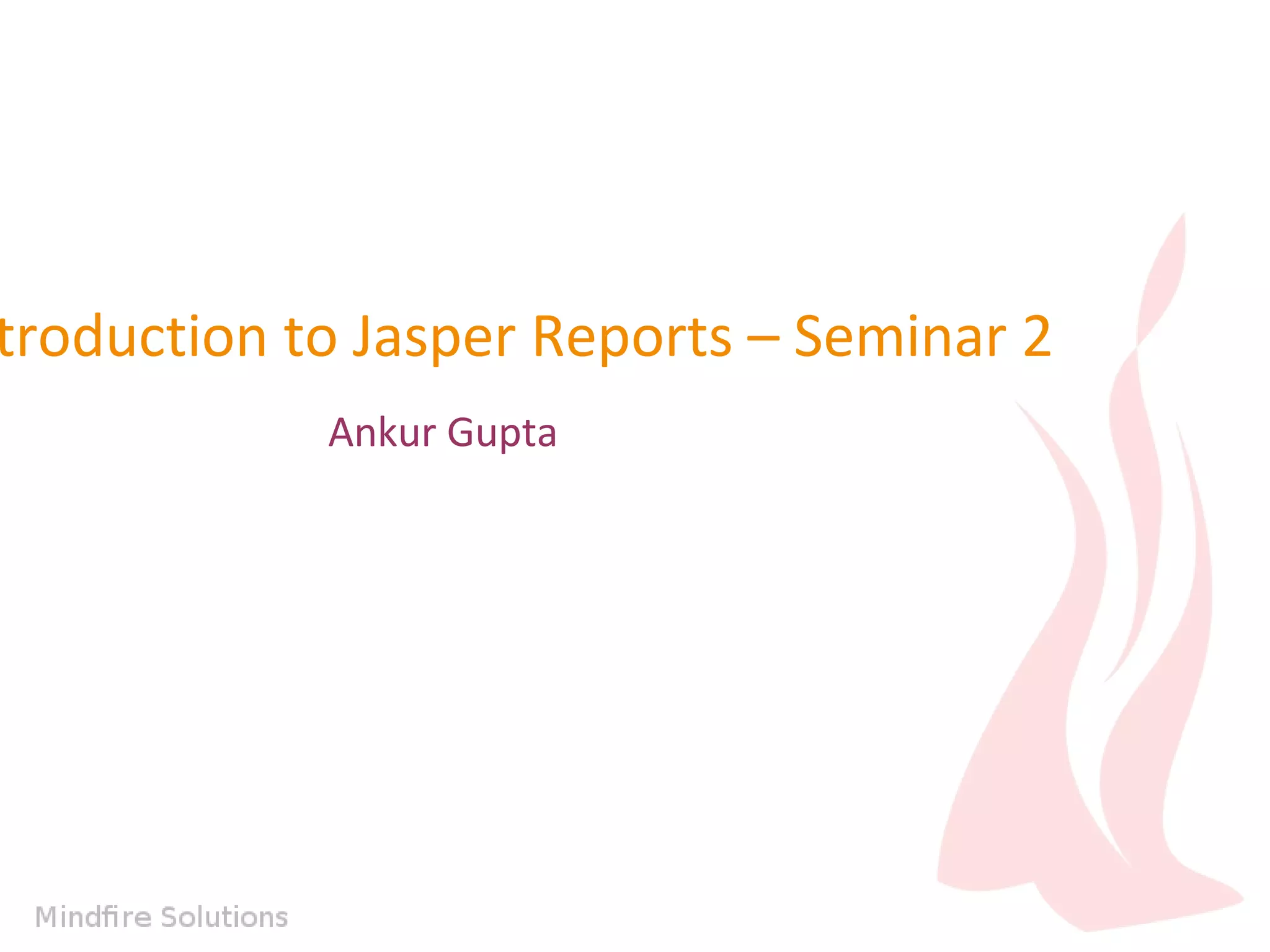 The seminar introduces Jasper Reports, covering tools like iReport, data sources, and report elements. It discusses grouping, evaluation time, charts, and the use of sub-reports versus lists. Future sessions will focus on custom data sources, cascading parameters, and other advanced reporting features.