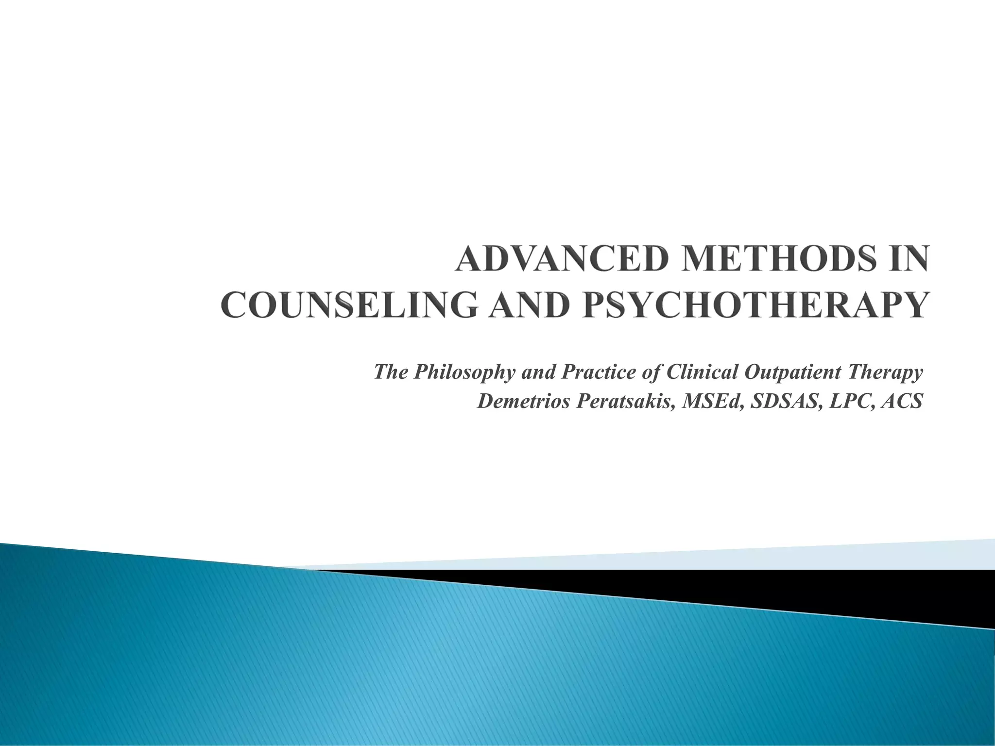 The document discusses the philosophy and practice of clinical outpatient therapy from the perspective of Demetrios Peratsakis. It provides an overview of Peratsakis' training and mentors in family therapy and Adlerian approaches. The document also outlines a psychosocial, constructivist perspective on the development of psychological symptoms, viewing them as protective belief structures that arise from trauma, power struggles, or medical conditions. It discusses how symptoms acquire meaning, purpose, and power over time through hardened interaction patterns. Unresolved trauma can result in depression and anxiety, which are fueled by guilt, anger, and shame and left untreated, may be used to control or punish others.