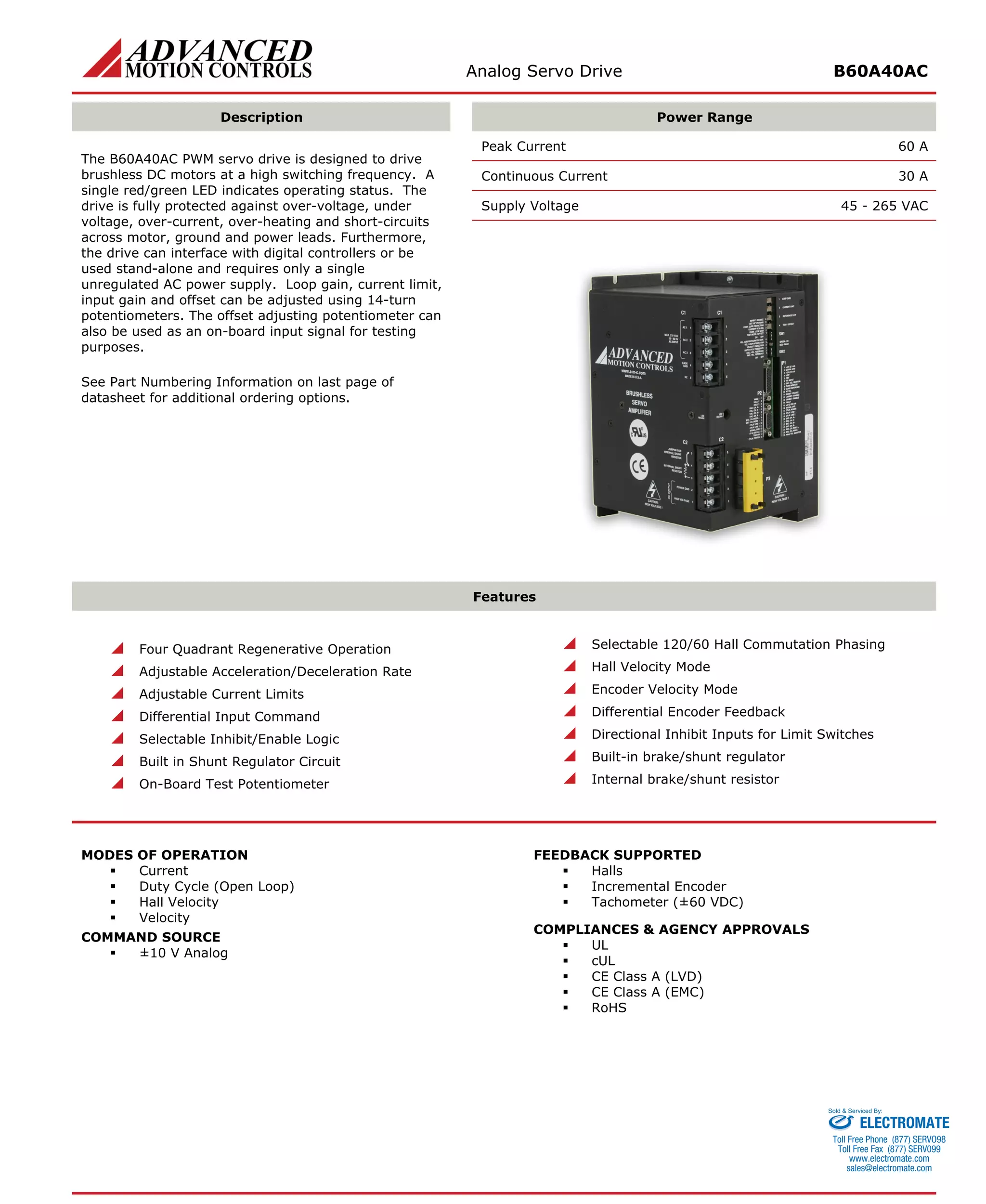 - Can be controlled via analog input or standalone and supports hall sensors, encoders or tachometers for feedback.