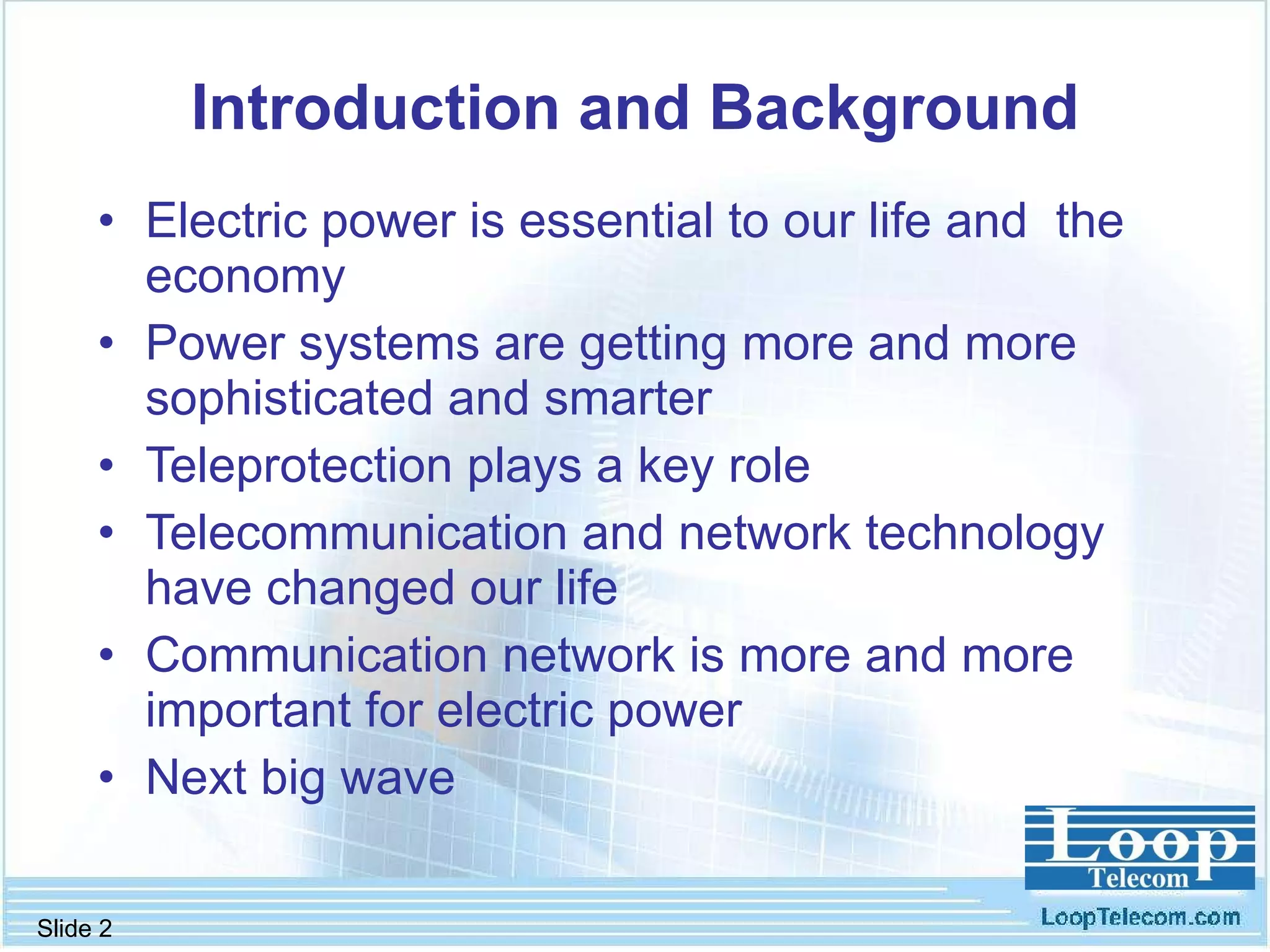 - Case studies are presented that demonstrate applications of Loop Telecom's solutions for various power utility communication networks around the world, including microwave, optical fiber, and wireless technologies.
