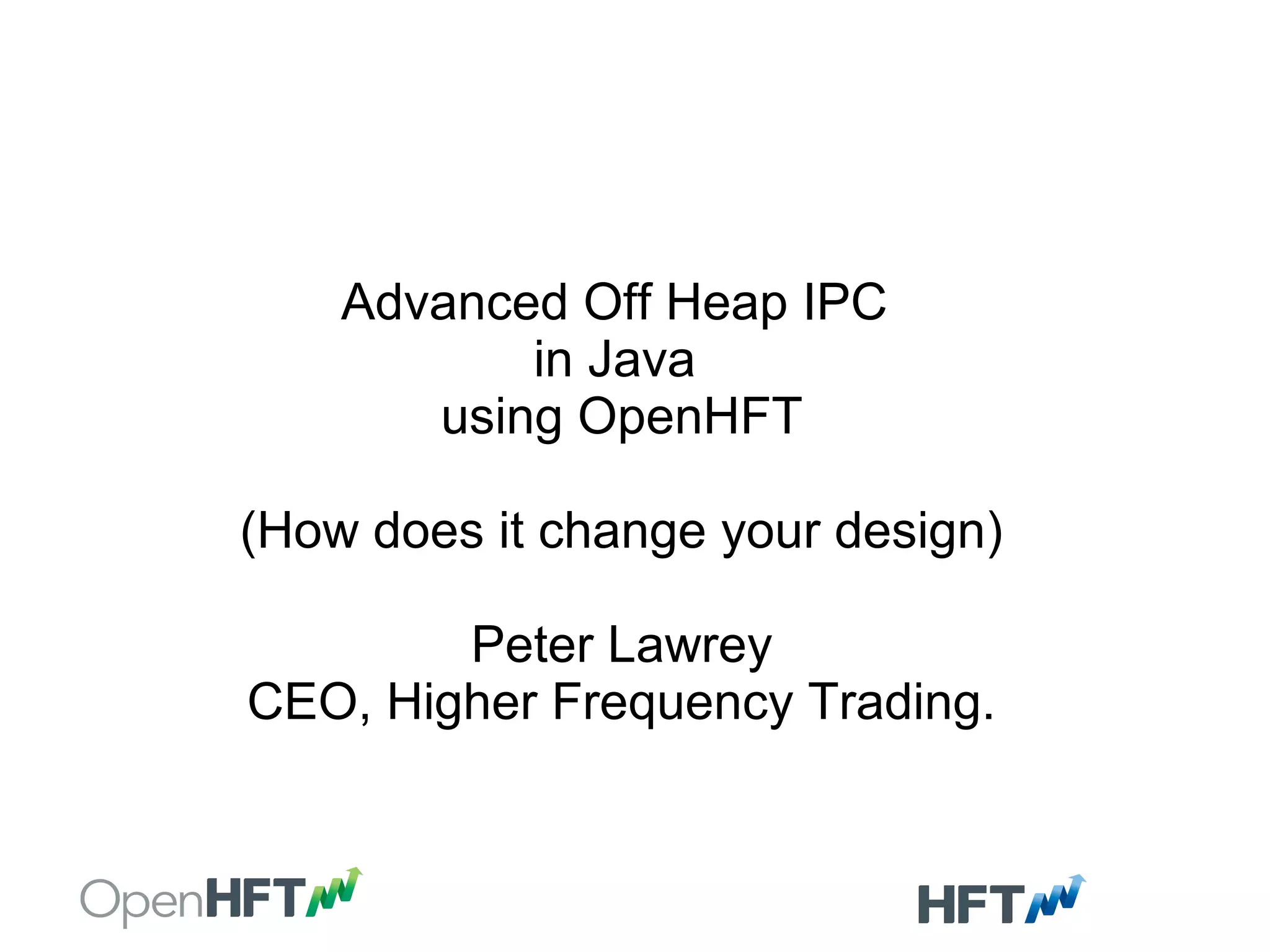 This document discusses advanced inter-process communication (IPC) techniques using off-heap memory in Java. It introduces OpenHFT, a company that develops low-latency software, and their open-source projects Chronicle and OpenHFT Collections that provide high-performance IPC and embedded data stores. It then discusses problems with on-heap memory and solutions using off-heap memory mapped files for sharing data across processes at microsecond latency levels and high throughput.
