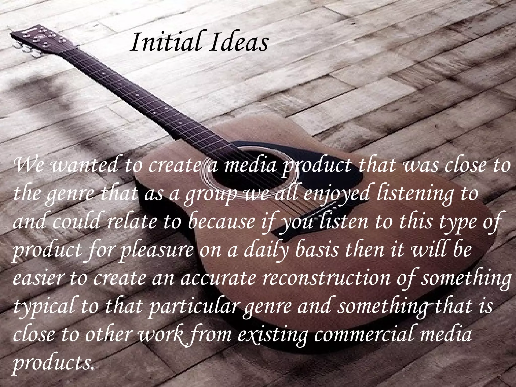 The document discusses the creation of a music video for an indie rock band called Funnel. It describes researching conventions of music videos within the genre to incorporate close-ups, location shots, and a relationship between the music and visuals. Challenges included synchronizing lip syncing and filming from a high angle without a tall tripod. Feedback was positive about the quirky style matching the song and using creative micro-elements, though some found the lip syncing inconsistent at times.