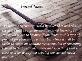 The document discusses the creation of a music video for an indie rock band called Funnel. It describes researching conventions of music videos within the genre to incorporate close-ups, location shots, and a storyline linked to the music. Feedback on the final video was positive, praising the chosen location, quirky style, and creative elements that matched the song and appealed to the target audience. Areas for improvement included occasional out-of-sync lip syncing and needing more location variety.