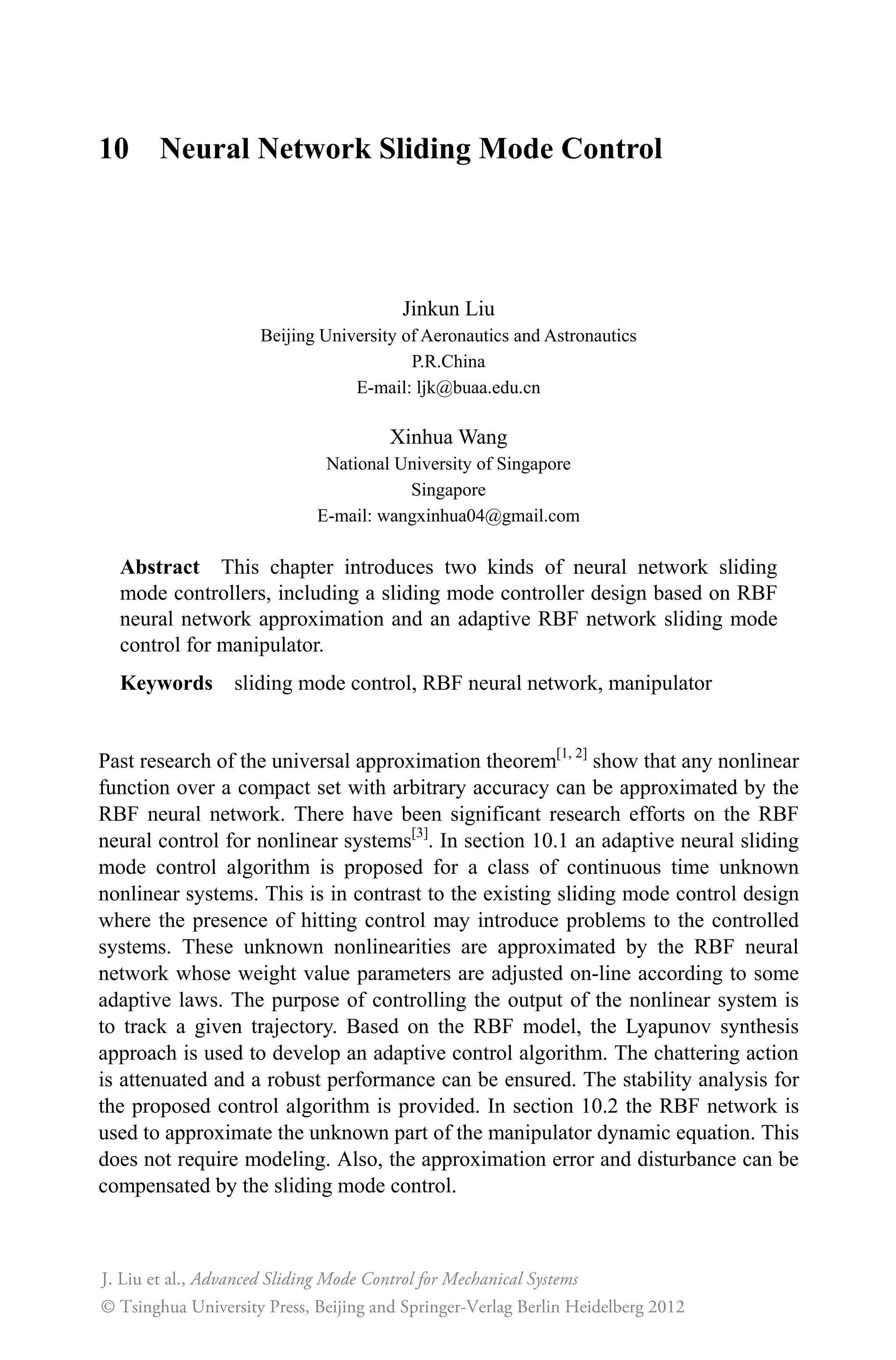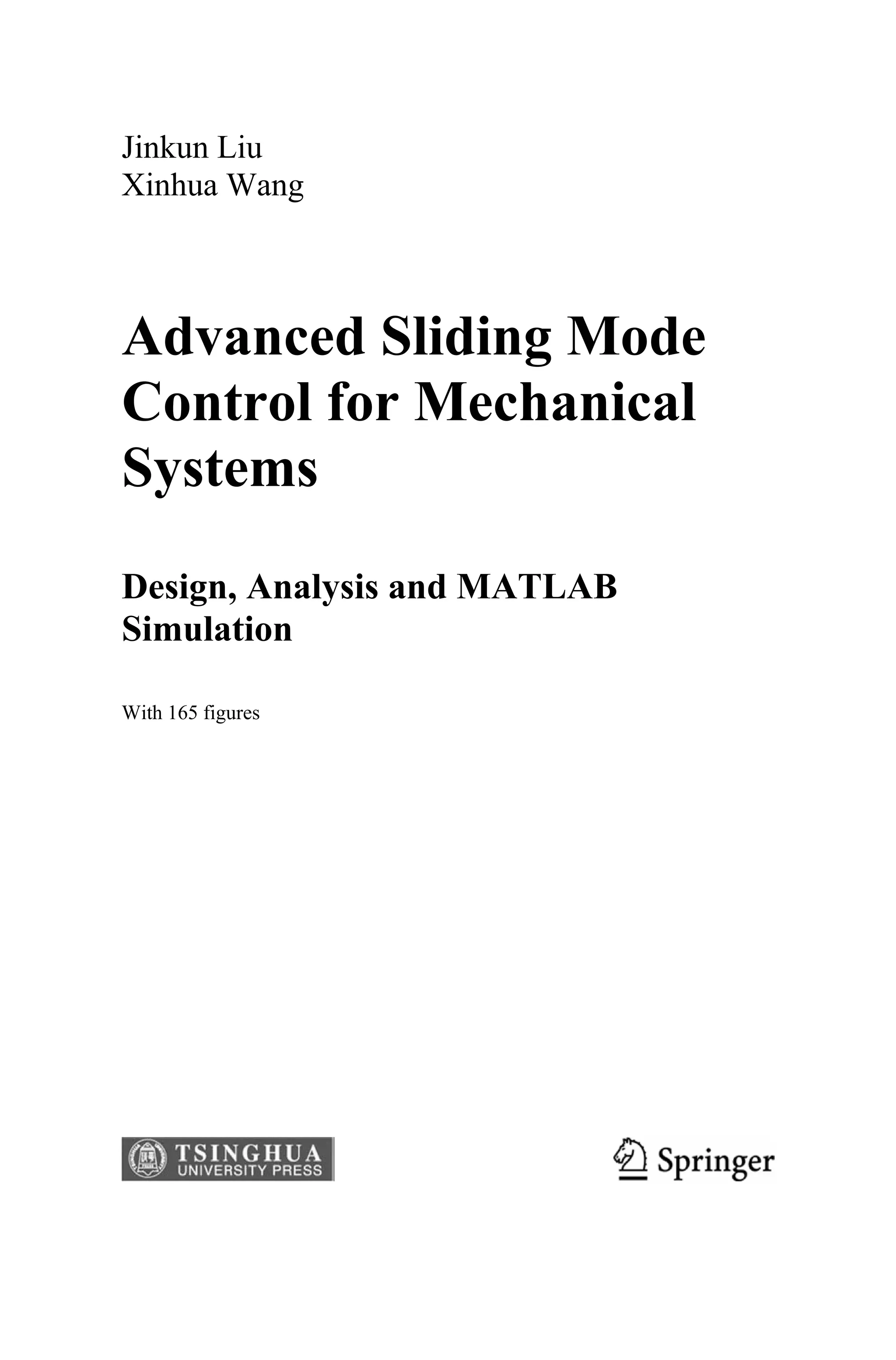 This document provides an overview and table of contents for a book on advanced sliding mode control for mechanical systems. The book covers topics such as sliding mode controller design, analysis, and MATLAB simulation. It includes 11 chapters that discuss various sliding mode control approaches, such as normal sliding mode control, advanced sliding mode control, discrete sliding mode control, adaptive sliding mode control, terminal sliding mode control, and sliding mode control based on observers. Case studies and MATLAB programs are provided to illustrate practical applications of the theory.