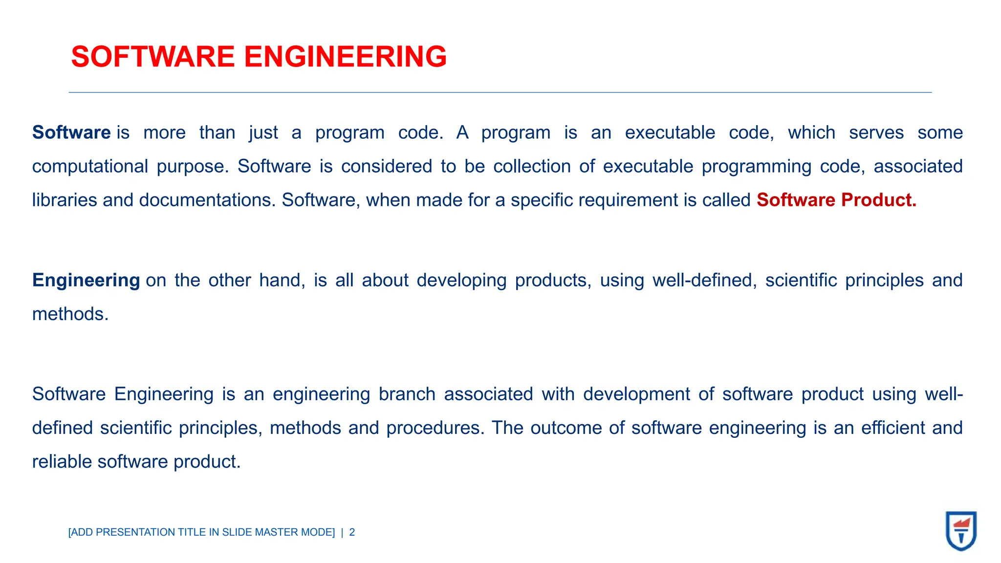libraries and documentations. Software, when made for a specific requirement is called Software Product.