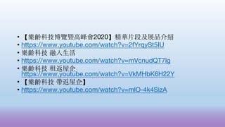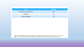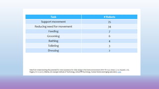 This document discusses technologies for aging populations and older adults. It covers several topics: