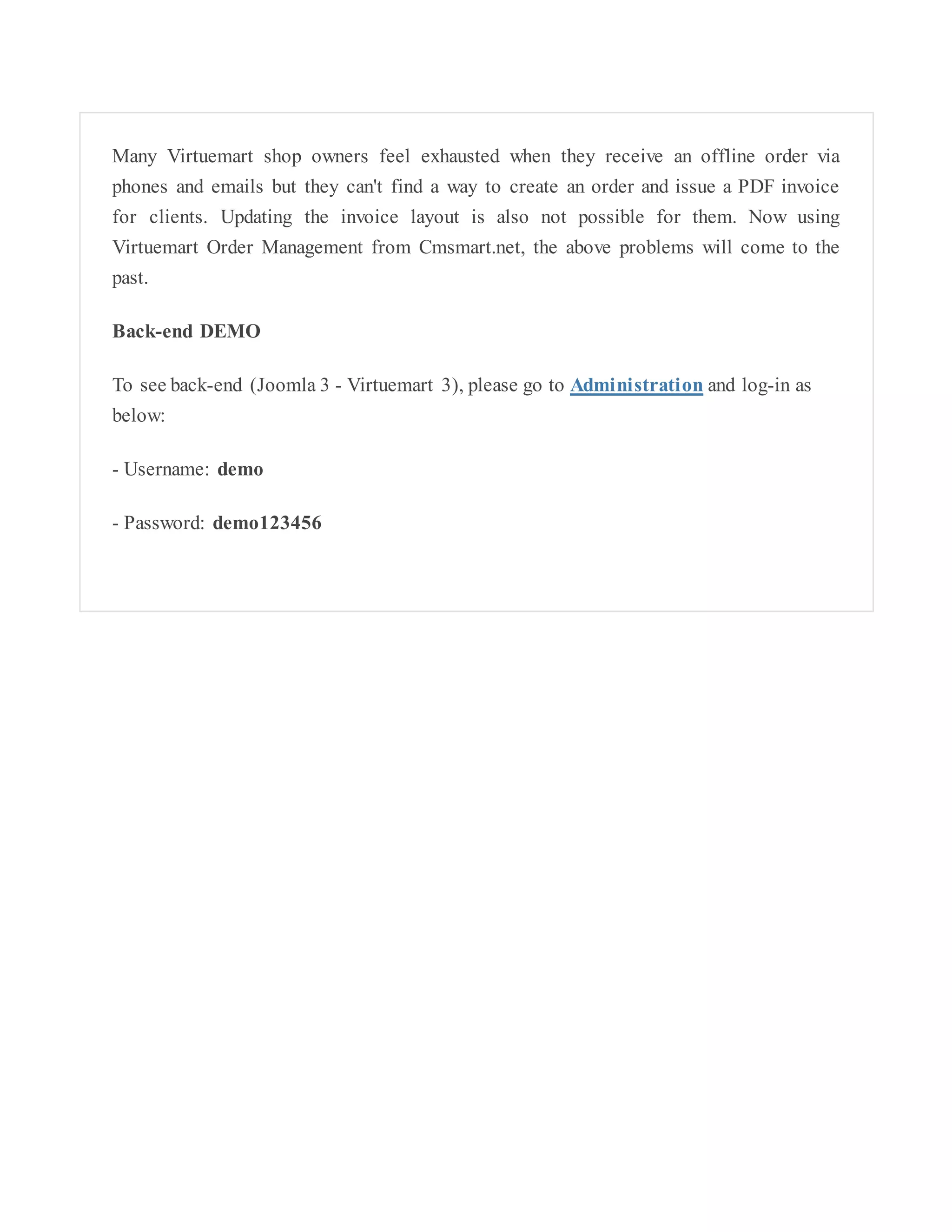 Advanced Virtuemart Invoices is a robust component for Virtuemart that allows users to create orders, generate PDF invoices, and customize invoice layouts within the Virtuemart admin panel. It addresses order management weaknesses by enabling batch invoice generation and simple order creation for offline orders. The extension is user-friendly, compatible with Virtuemart core, and offers features like revenue reports, order sorting, and customizable invoice templates.