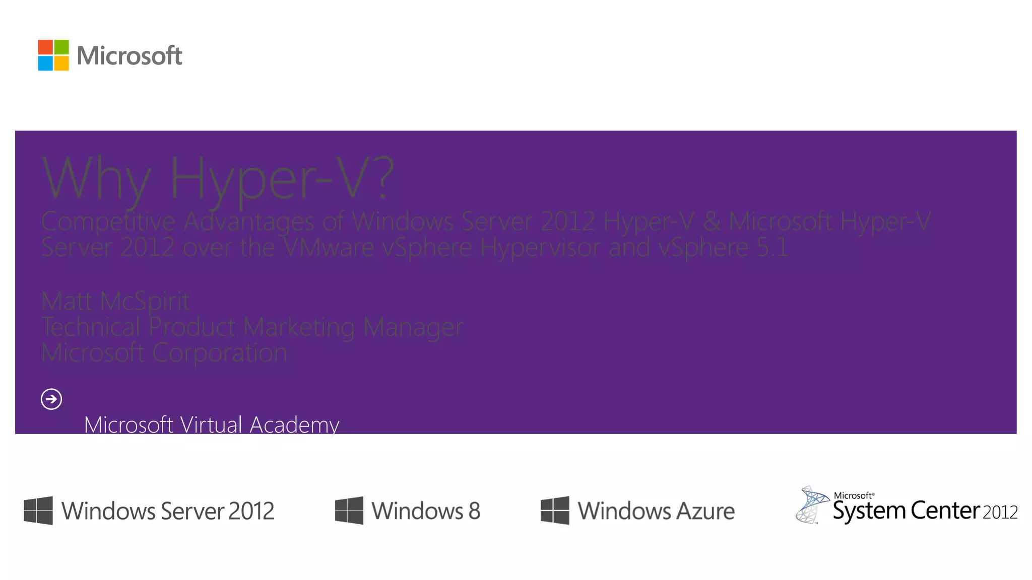 Hyper-V provides competitive advantages over VMware in the areas of core virtualization, private cloud infrastructure, scalability, storage capabilities, networking, security, mobility and high availability. It offers higher scalability, larger virtual machines and disks, more storage features, an extensible virtual switch, encryption, and live migration capabilities without additional licensing costs compared to VMware.